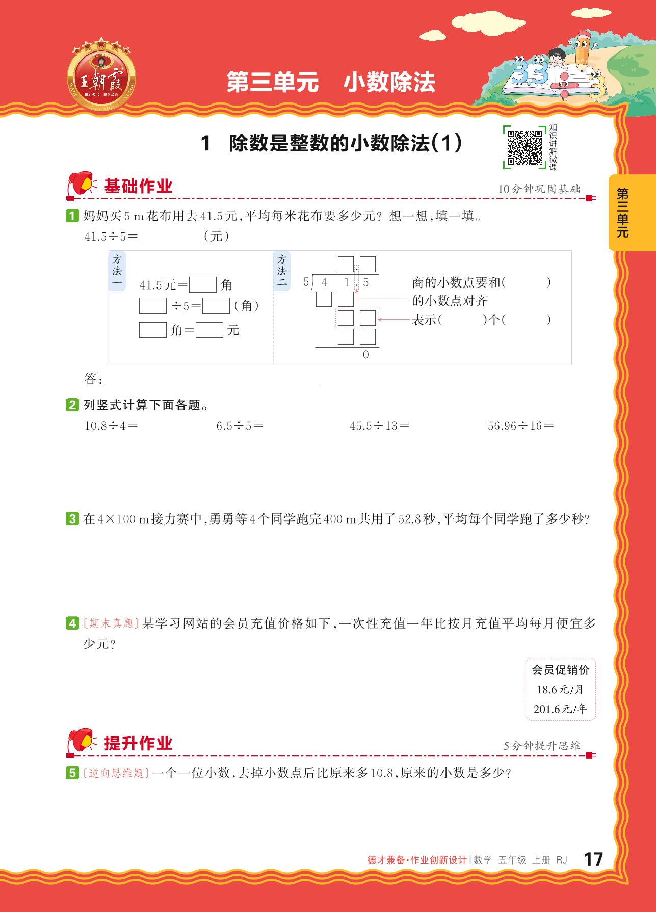 2024秋上册五年级数学人教版 第三单元 小数除法——1. 除数是整数的小数除法(1)_R240820112814421
