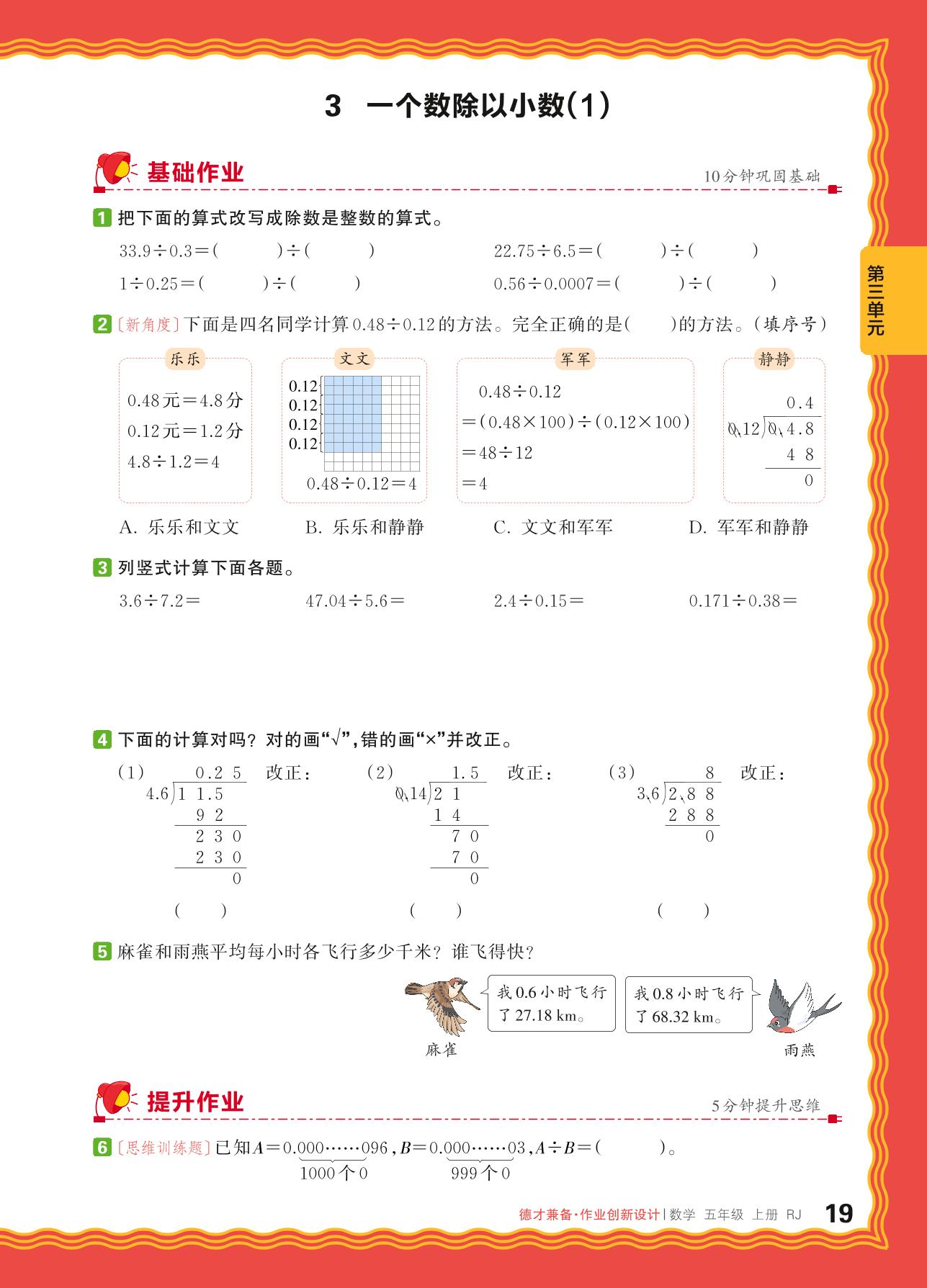 2024秋上册五年级数学人教版 第三单元 小数除法——3. 一个数除以小数(1)