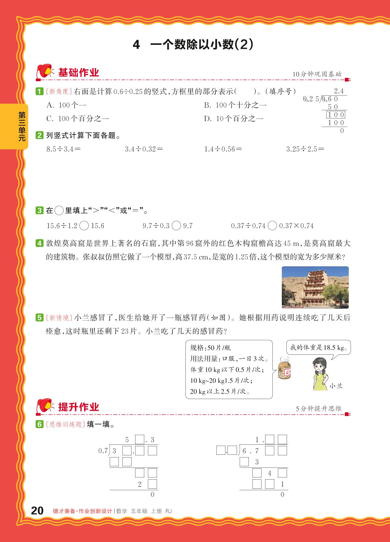 2024秋上册五年级数学人教版 第三单元 小数除法——4. 一个数除以小数(2)