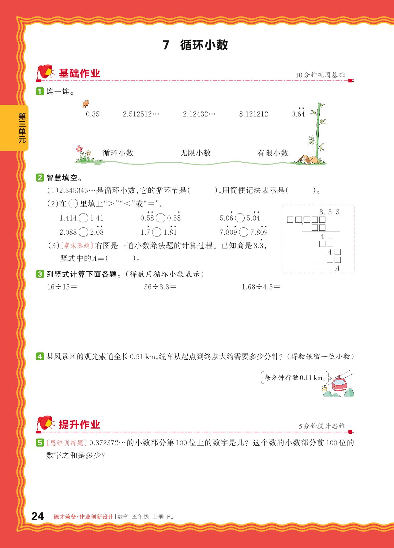 2024秋上册五年级数学人教版 第三单元 小数除法——7. 循环小数_R240820112816059