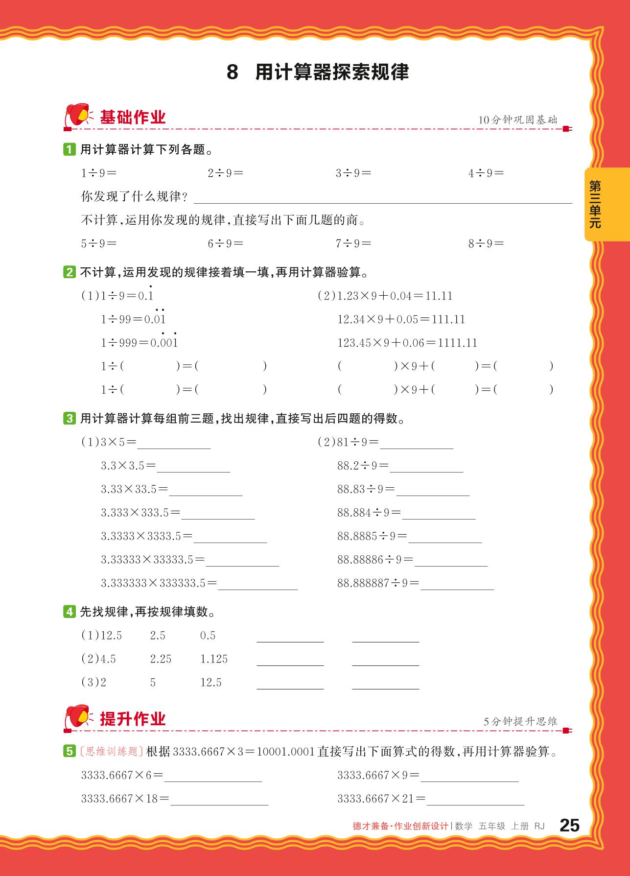 2024秋上册五年级数学人教版 第三单元 小数除法——8. 用计算器探索规律_R240820112816136