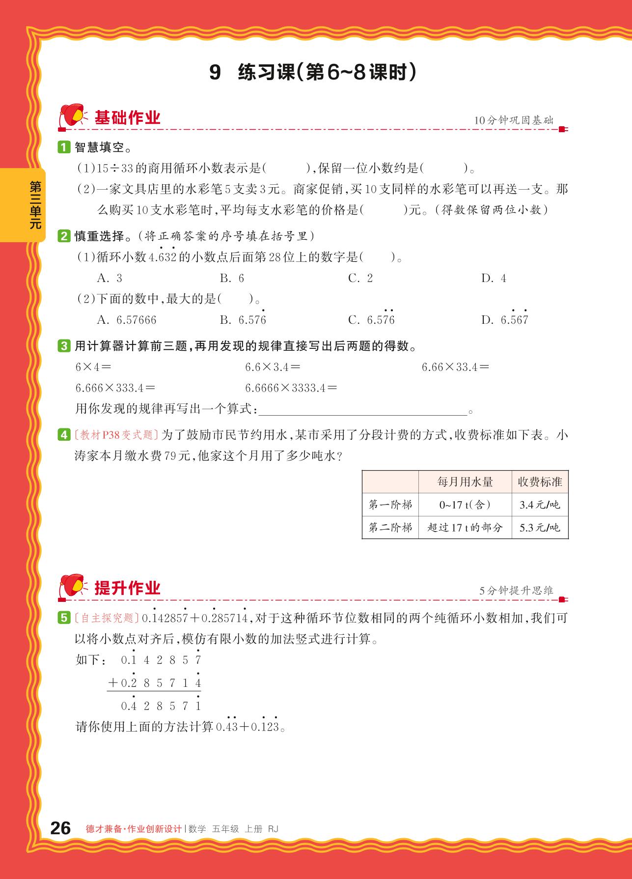 2024秋上册五年级数学人教版 第三单元 小数除法——9. 商的近似数、循环小数、用计算器探索规律练习课