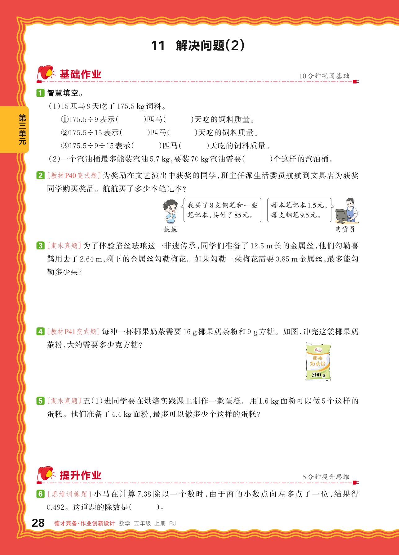 2024秋上册五年级数学人教版 第三单元 小数除法——11. 解决问题(2)