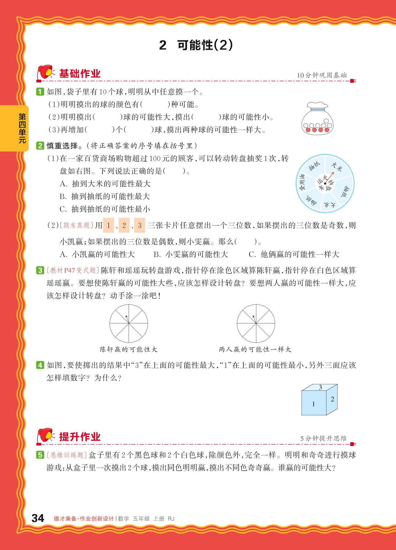 2024秋上册五年级数学人教版 第四单元 可能性——2. 可能性(2)