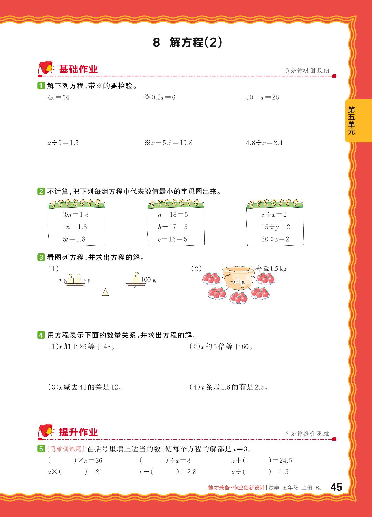 2024秋上册五年级数学人教版 第五单元 简易方程——8. 解方程(2)
