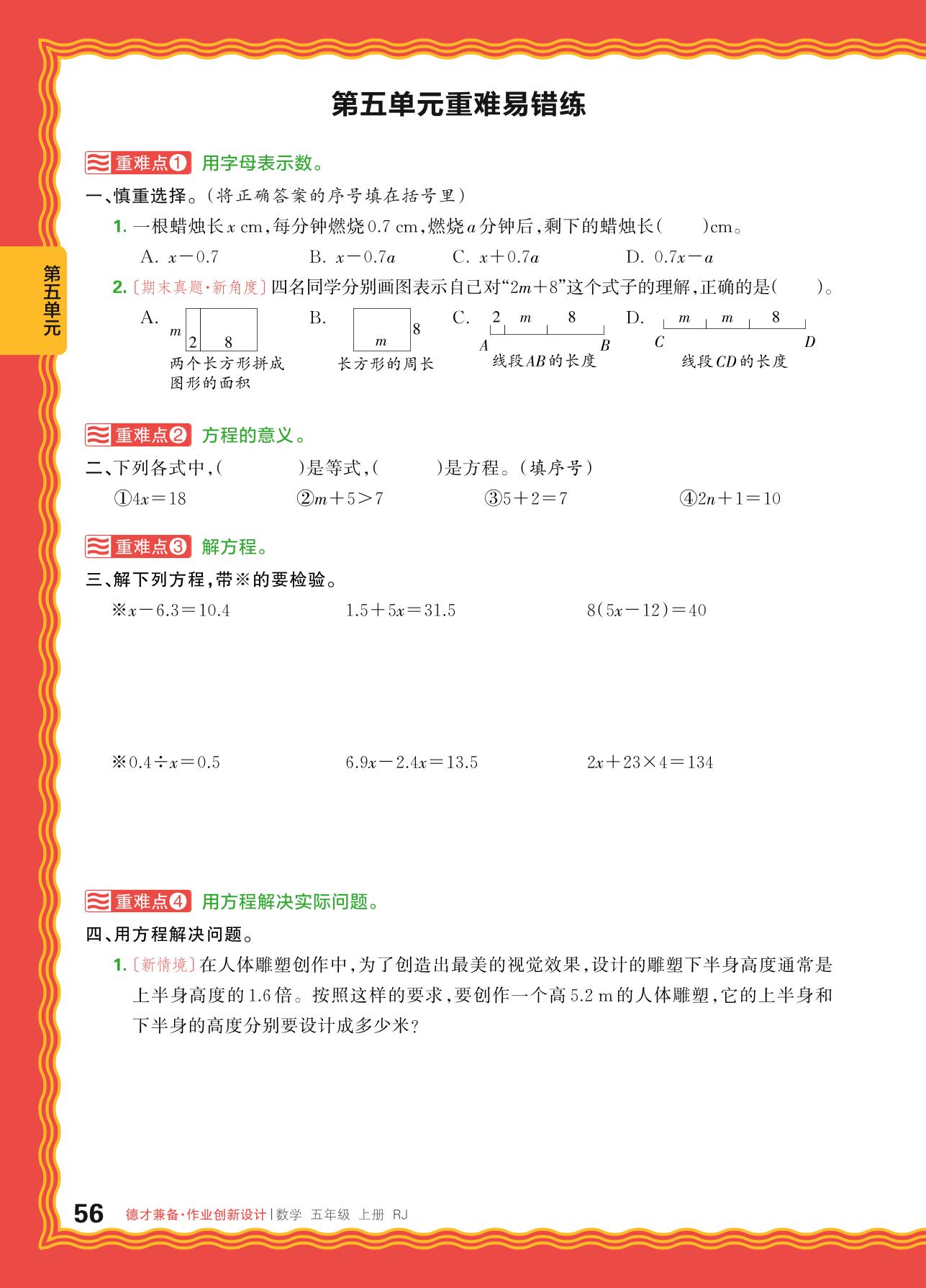 2024秋上册五年级数学人教版 第五单元重难易错练