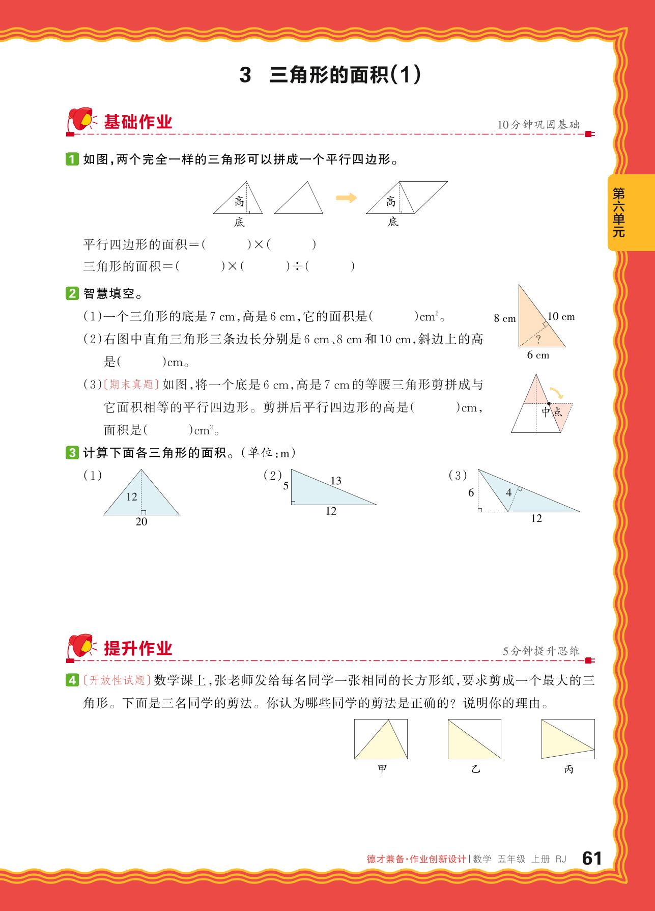 2024秋上册五年级数学人教版 第六单元 多边形的面积——3. 三角形的面积(1)_R240820112828463