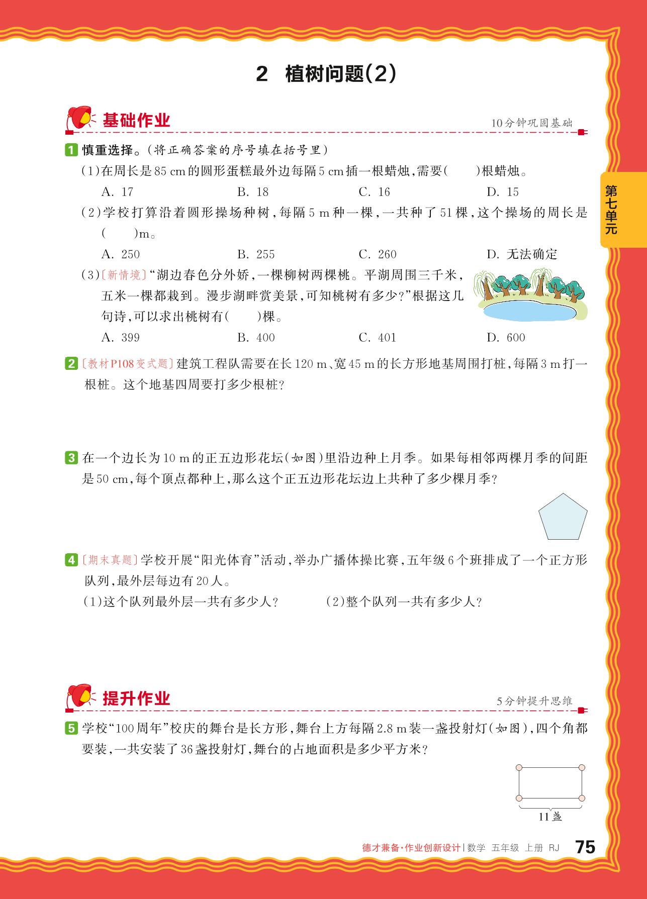 2024秋上册五年级数学人教版 第七单元 数学广角 植树问题——2. 植树问题(2)_R240820112832279