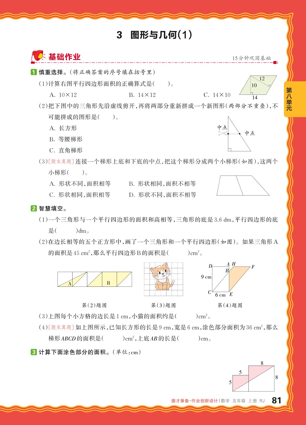 2024秋上册五年级数学人教版 第八单元 总复习——3. 图形与几何(1)