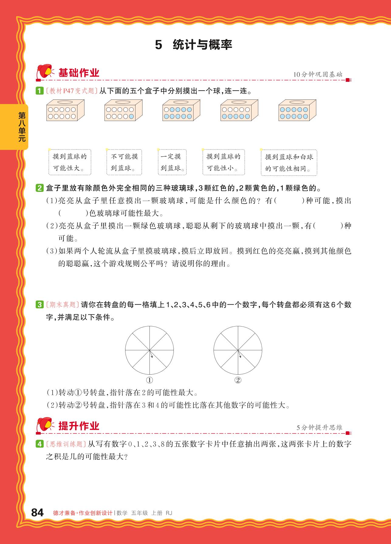 2024秋上册五年级数学人教版 第八单元 总复习——5. 统计与概率