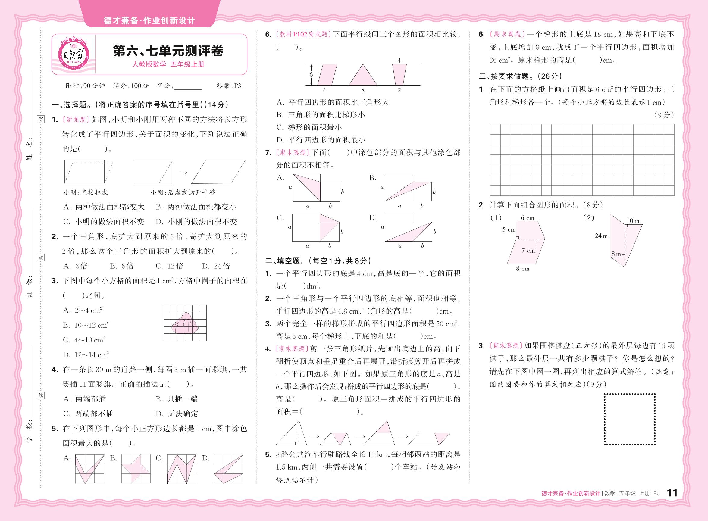 2024秋上册五年级数学人教版 第六、七单元测评卷