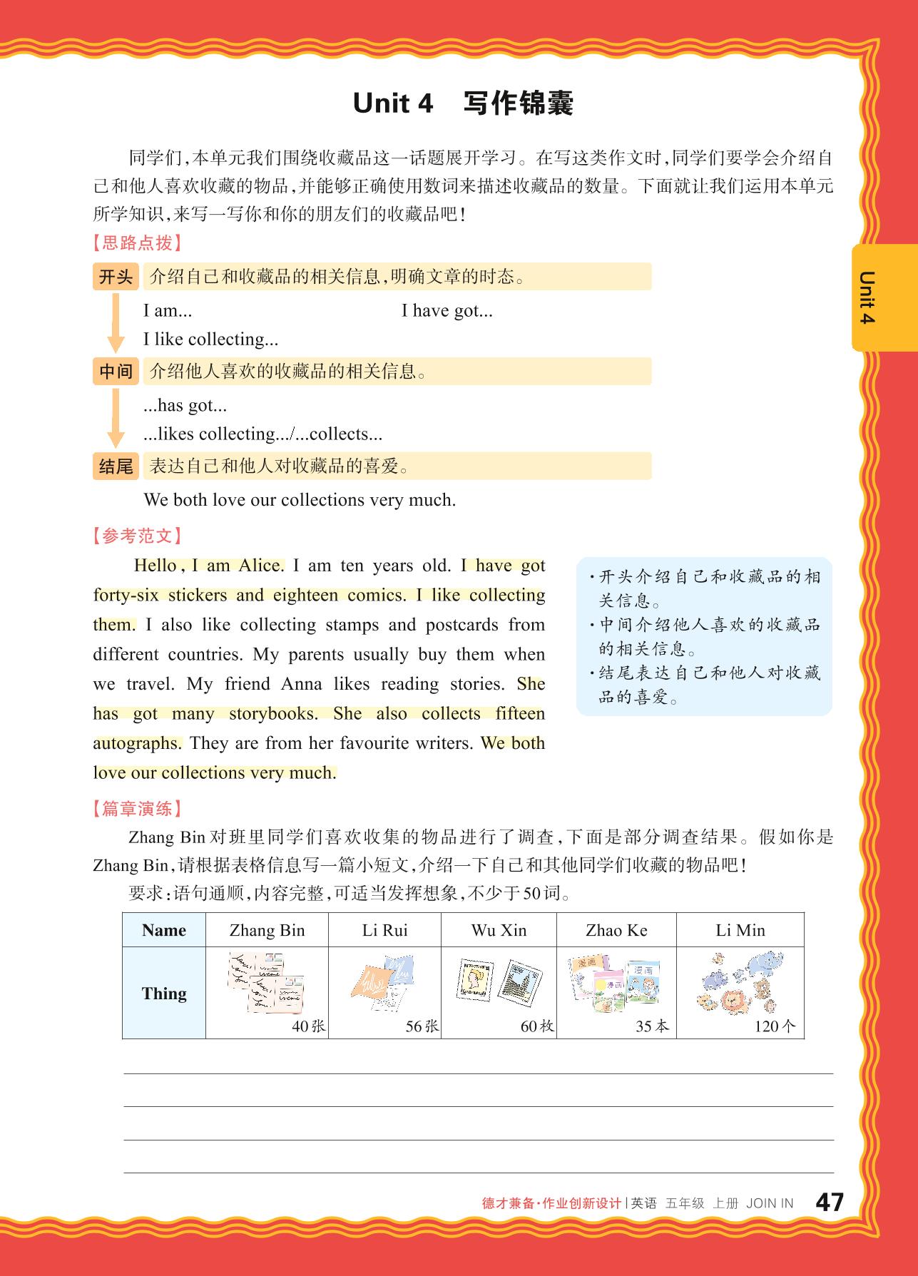 2024秋上册五年级英语剑桥版 Unit 4 写作锦囊