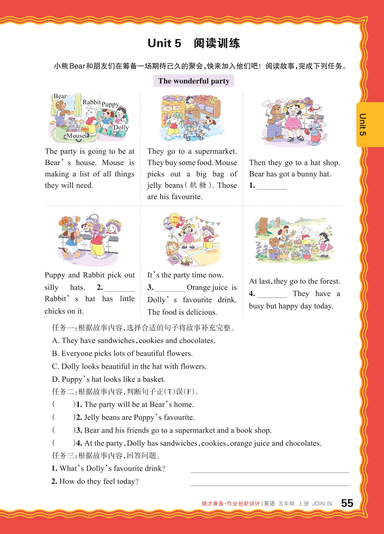 2024秋上册五年级英语剑桥版 Unit 5 阅读训练