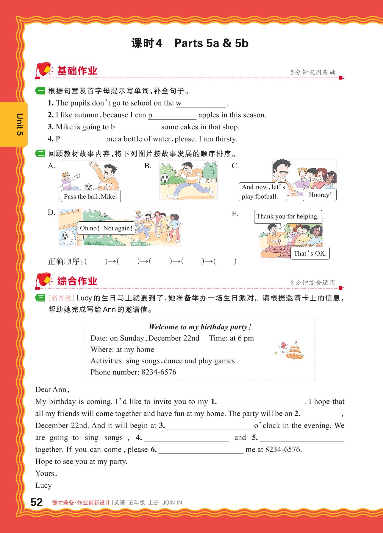 2024秋上册五年级英语剑桥版 Unit 5—课时 4 Parts 5a & 5b