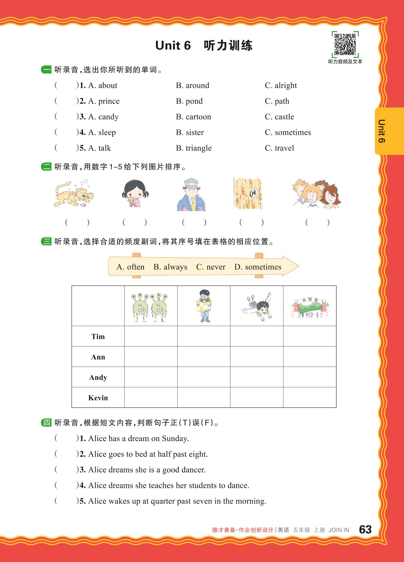2024秋上册五年级英语剑桥版 Unit 6 听力训练