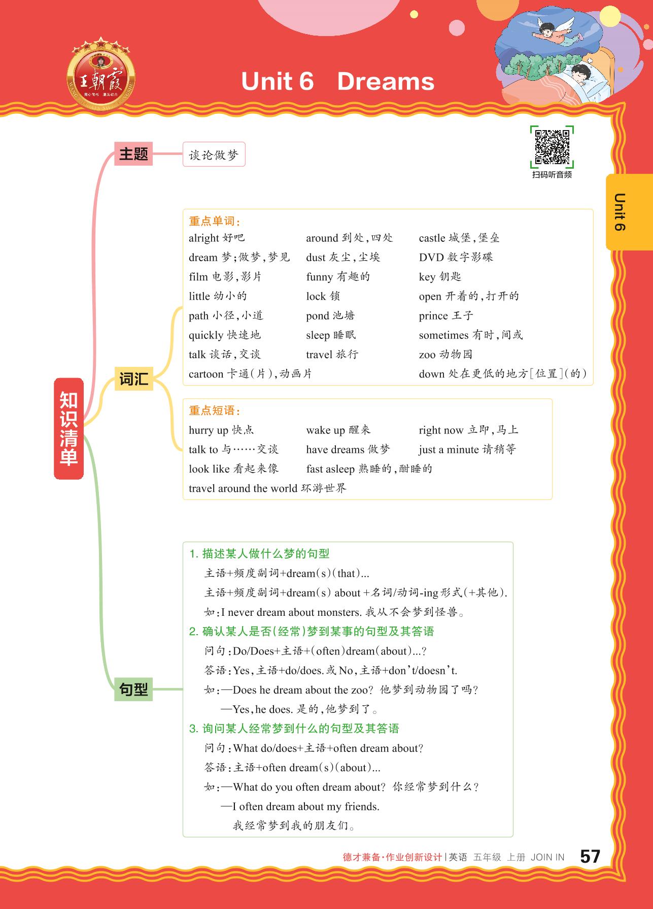 2024秋上册五年级英语剑桥版 Unit 6 知识清单