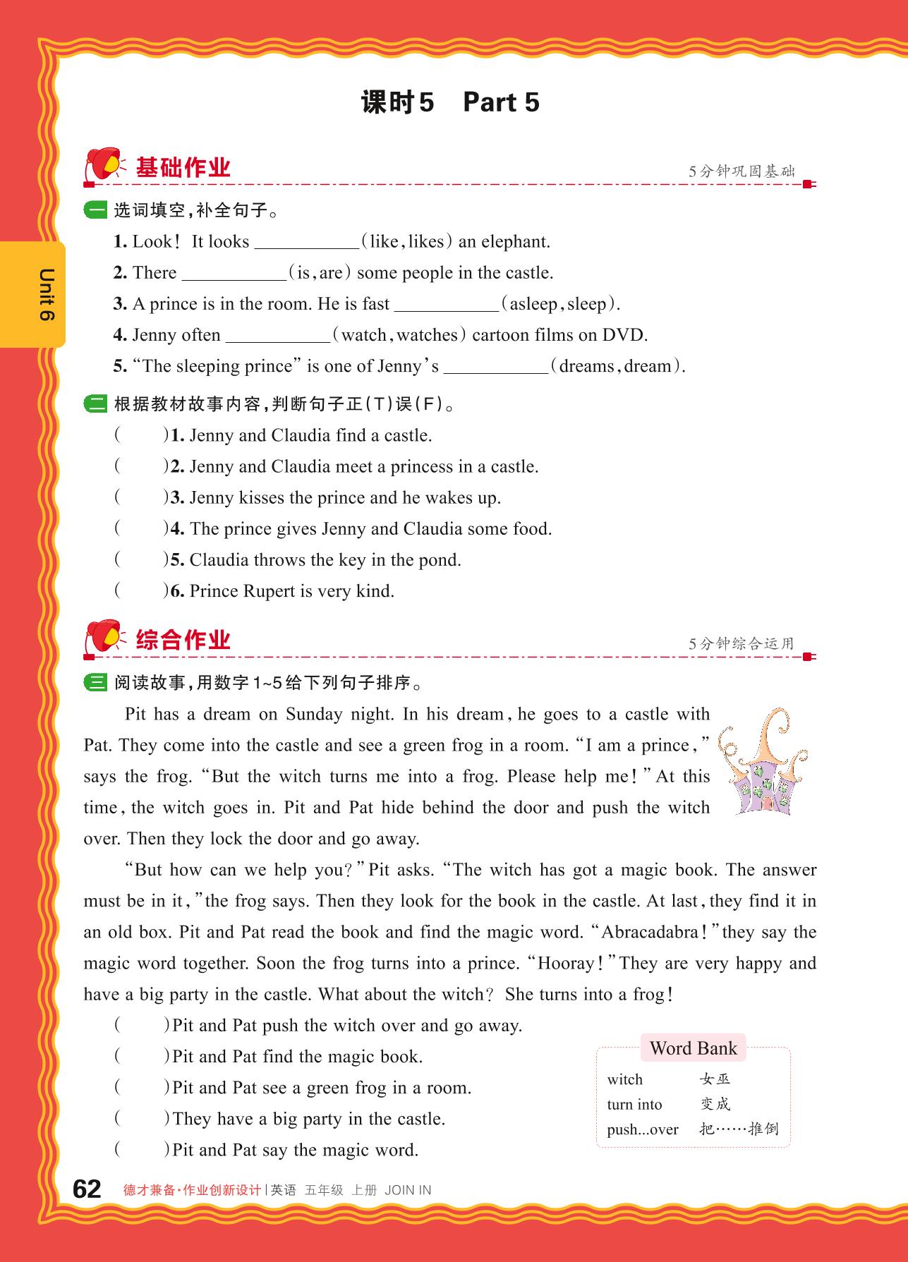 2024秋上册五年级英语剑桥版 Unit 6—课时 5 Part 5