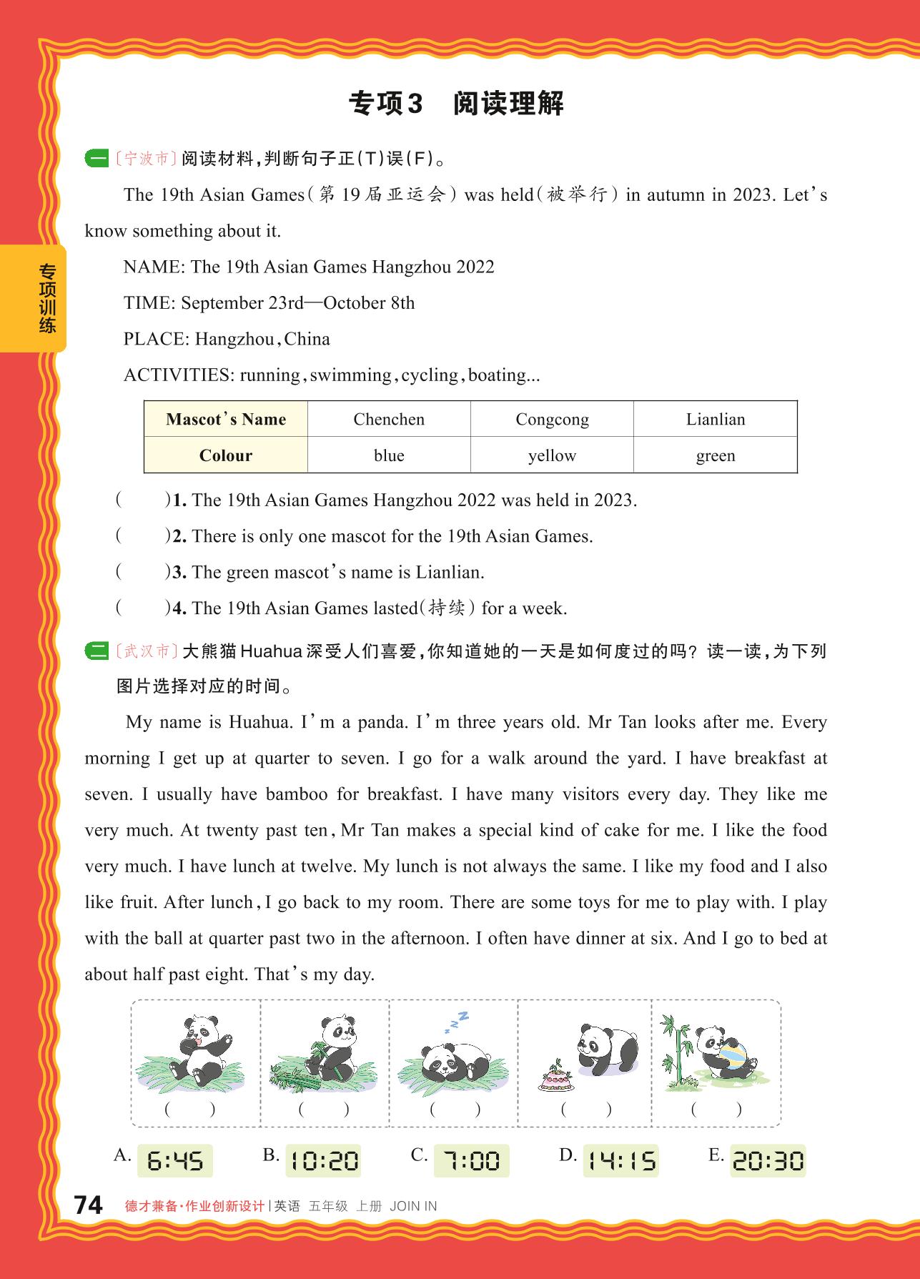 2024秋上册五年级英语剑桥版 期末专项卷DC版·阅读理解【3】