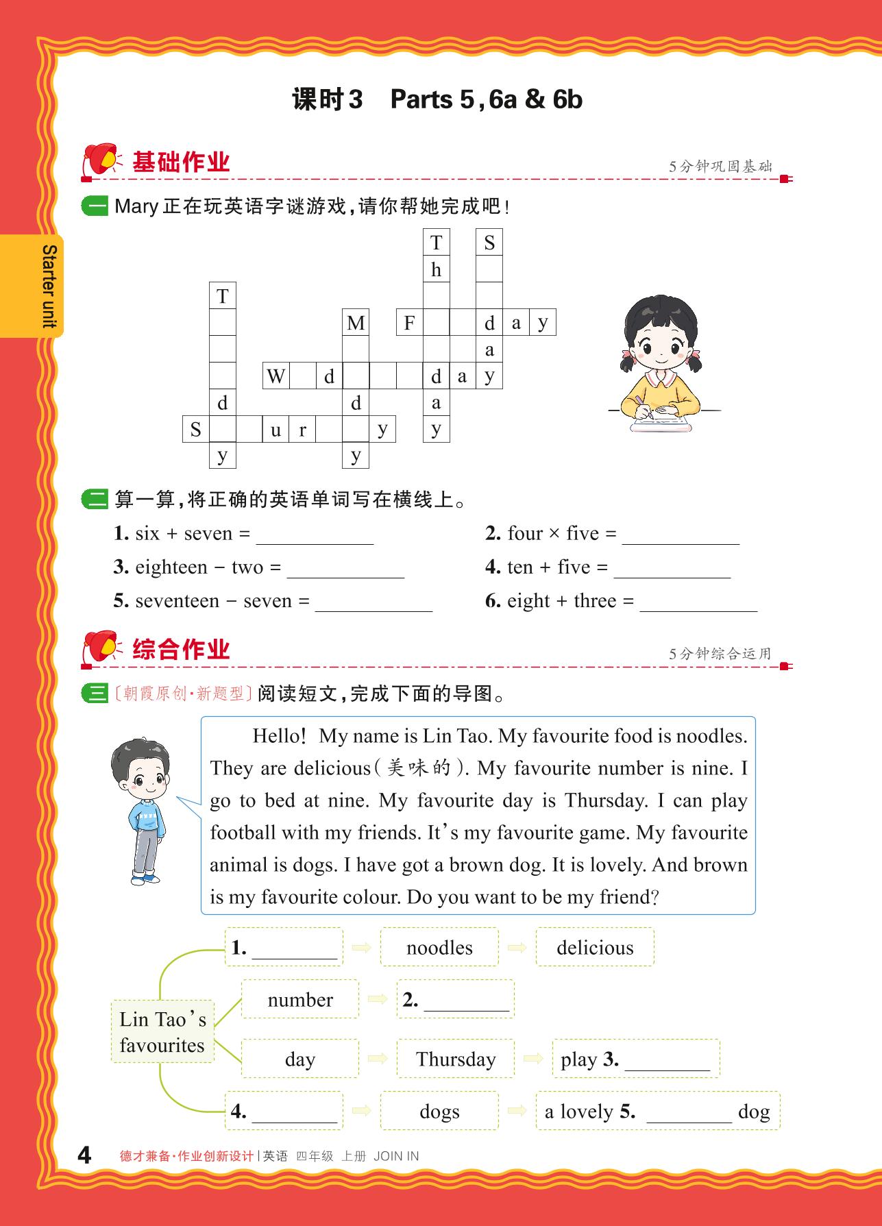 2024秋上册四年级英语剑桥版 Starter unit—课时3 Parts 5,6a & 6b