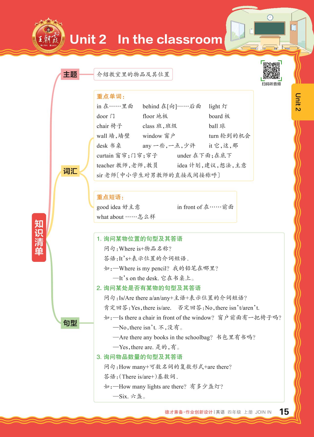 2024秋上册四年级英语剑桥版 Unit 2 知识清单