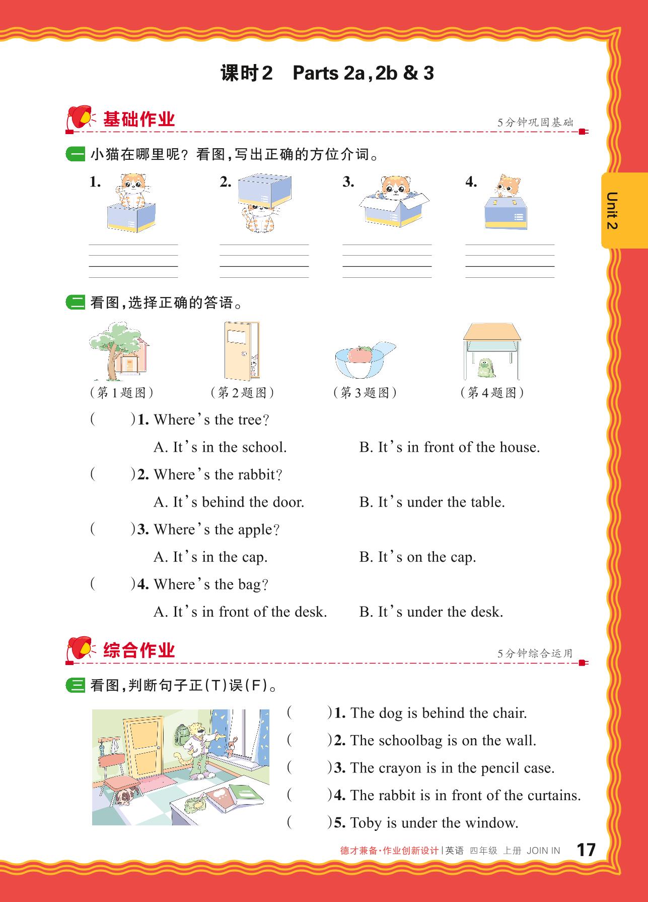 2024秋上册四年级英语剑桥版 Unit 2—课时2 Parts 2a,2b & 3
