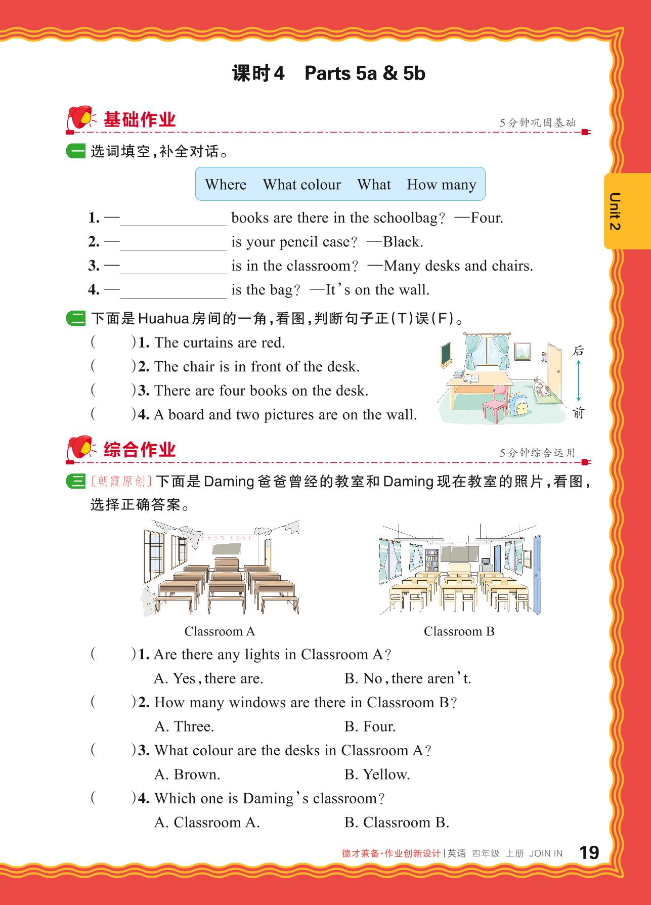 2024秋上册四年级英语剑桥版 Unit 2—课时4 Parts 5a & 5b