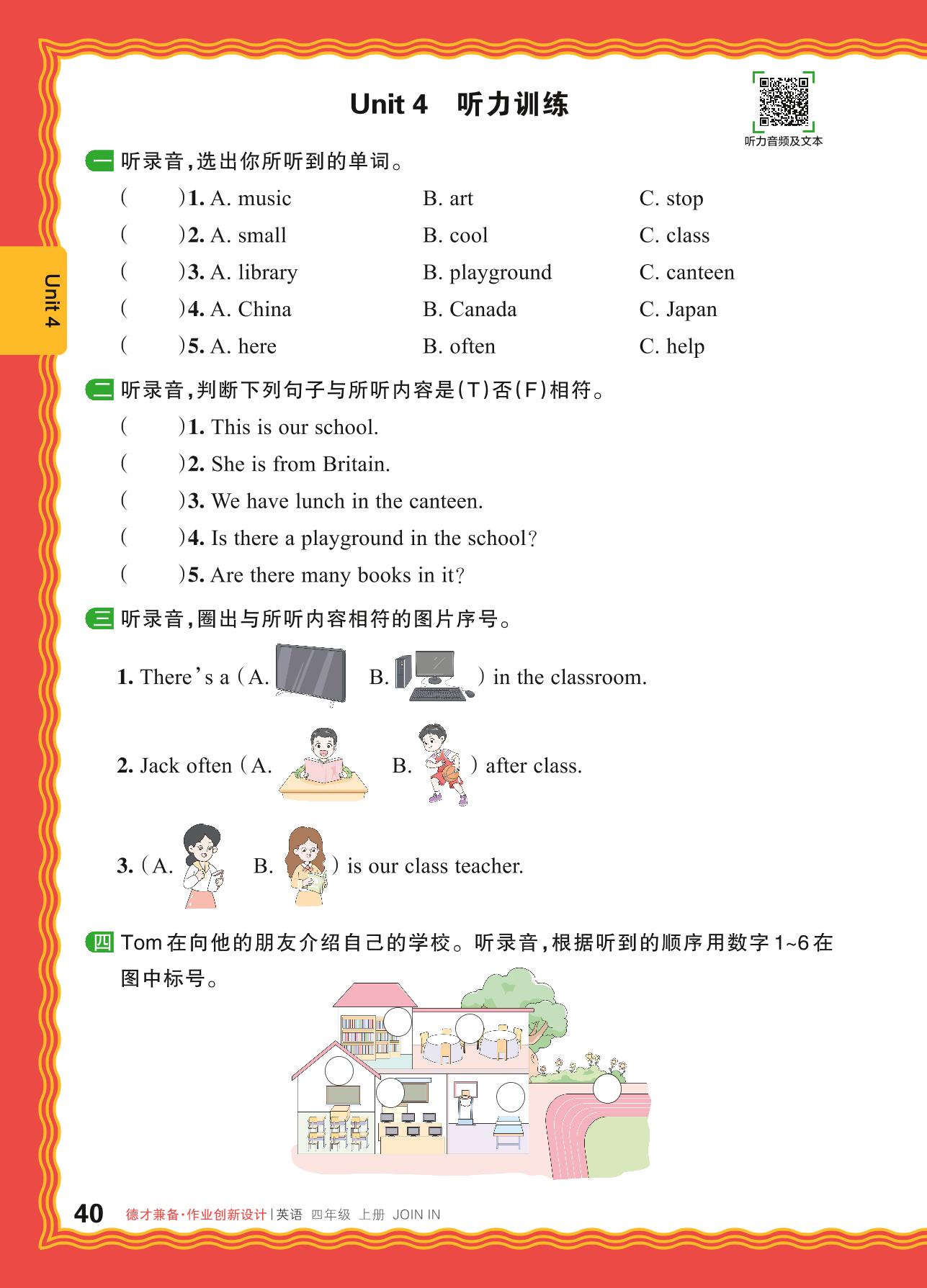 2024秋上册四年级英语剑桥版 Unit 4 听力训练