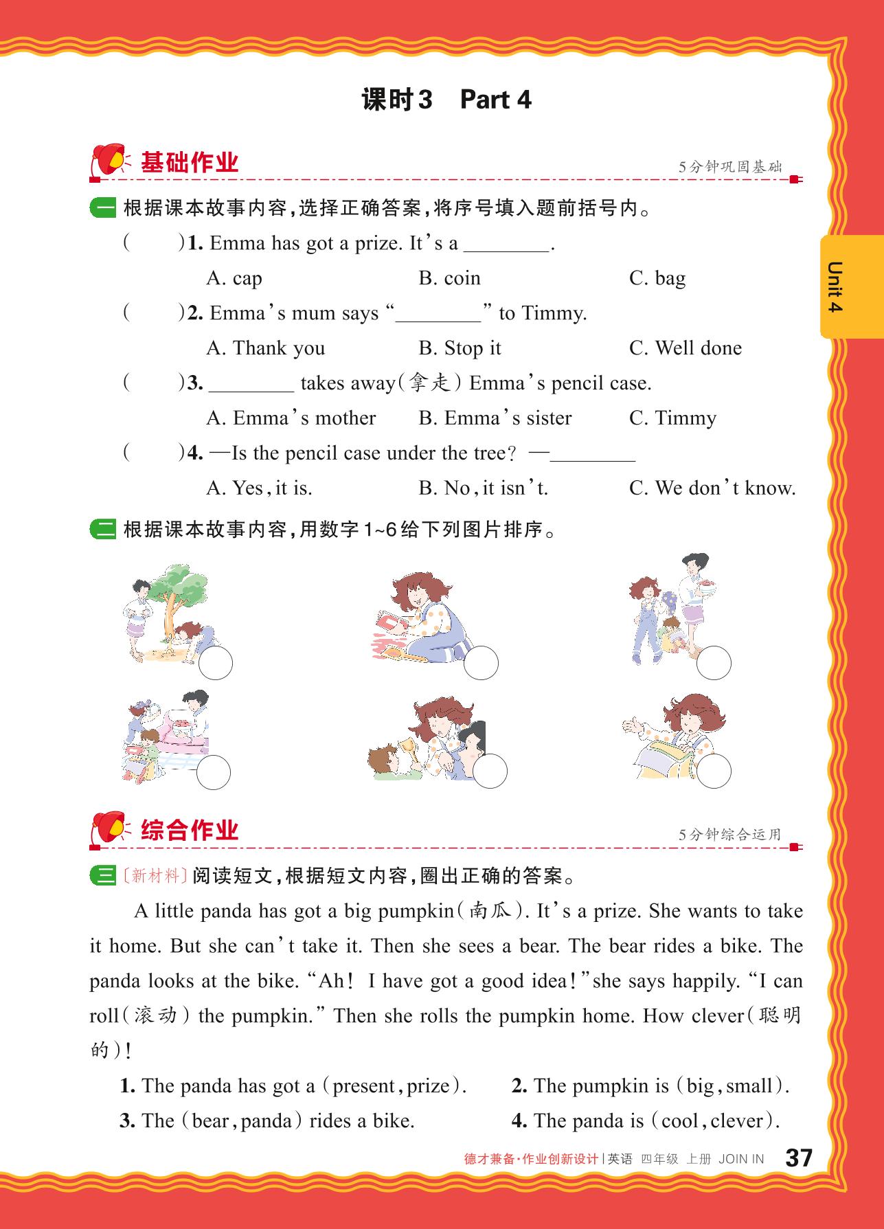 2024秋上册四年级英语剑桥版 Unit 4—课时3 Part 4