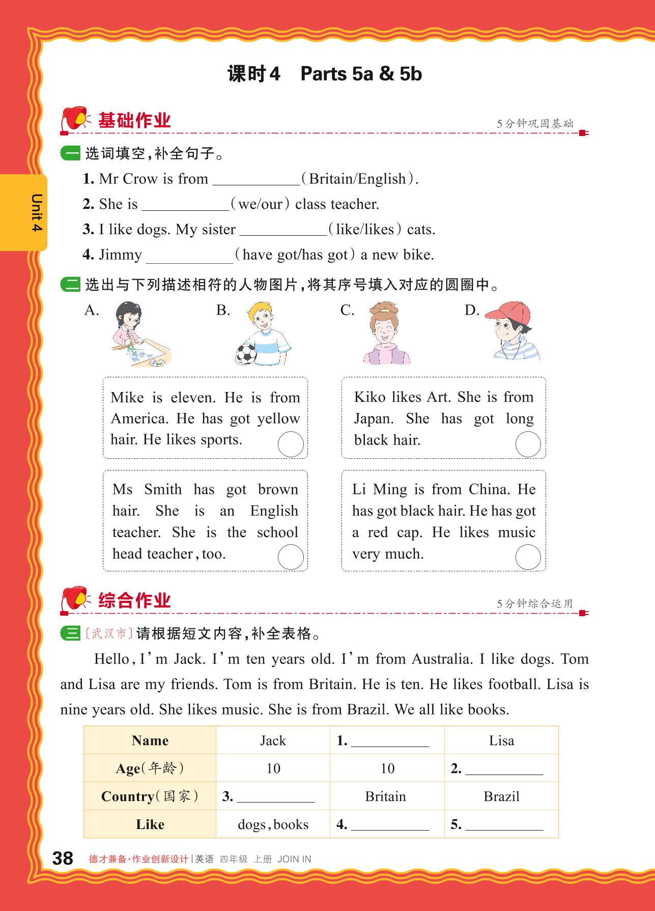 2024秋上册四年级英语剑桥版 Unit 4—课时4 Parts 5a & 5b