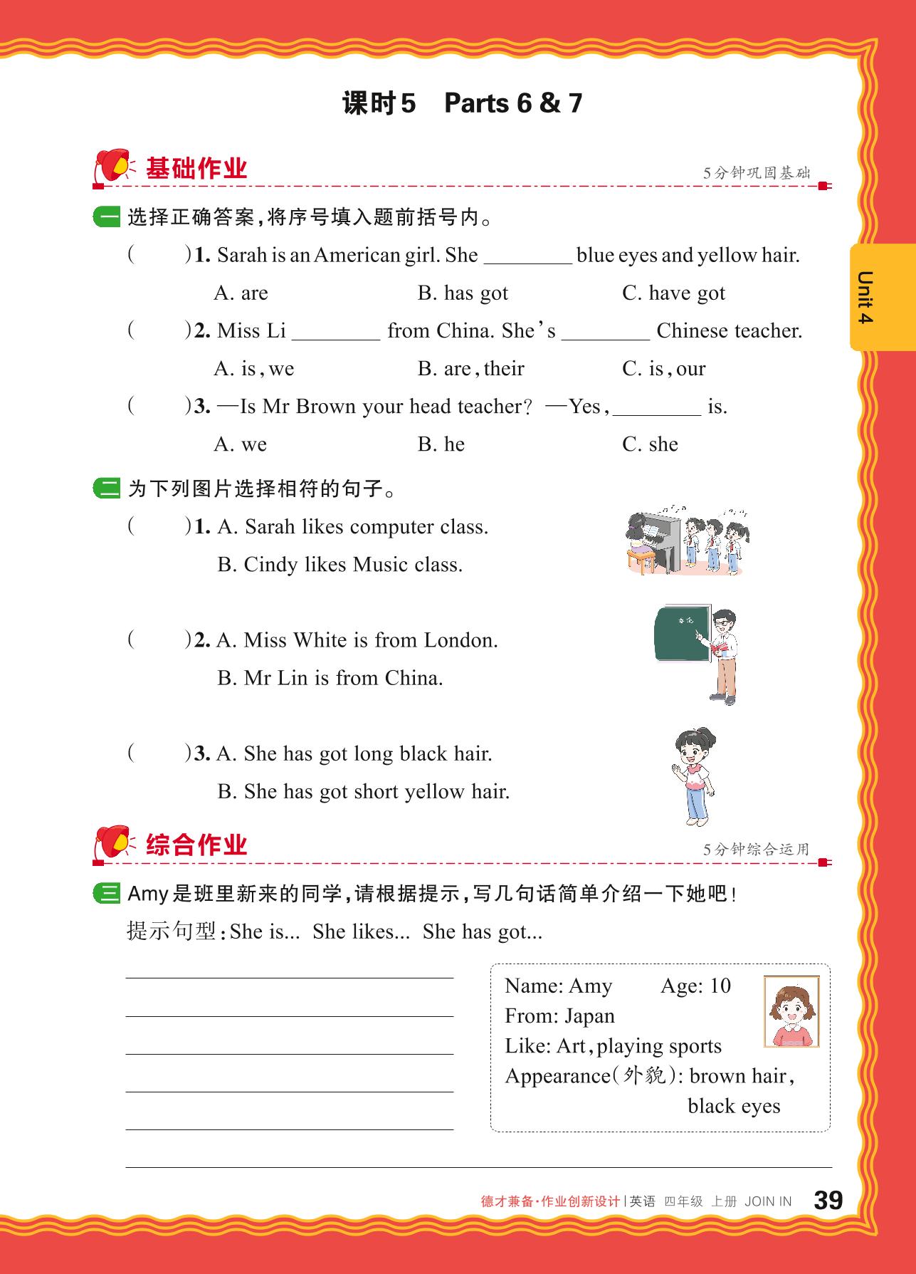 2024秋上册四年级英语剑桥版 Unit 4—课时5 Parts 6 & 7