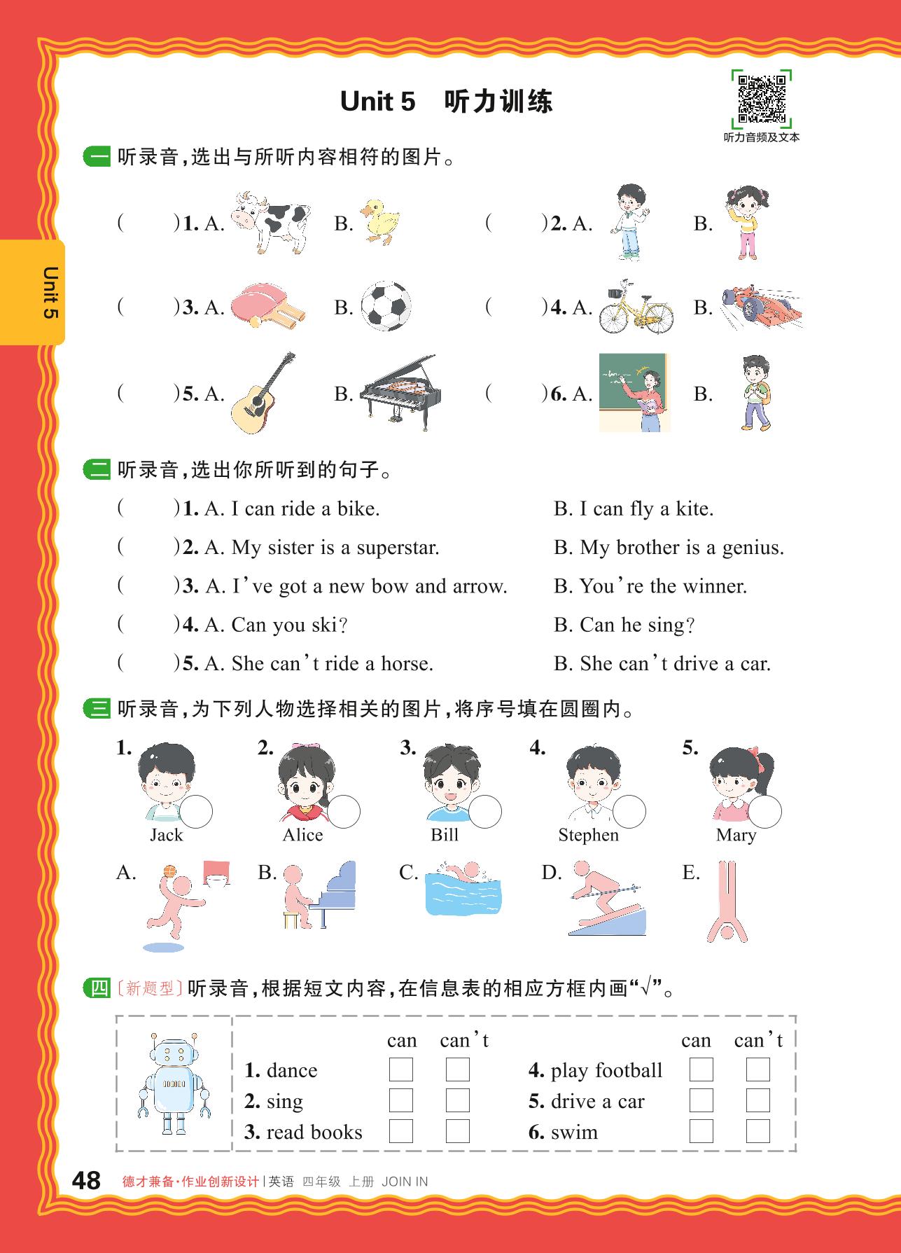 2024秋上册四年级英语剑桥版 Unit 5 听力训练