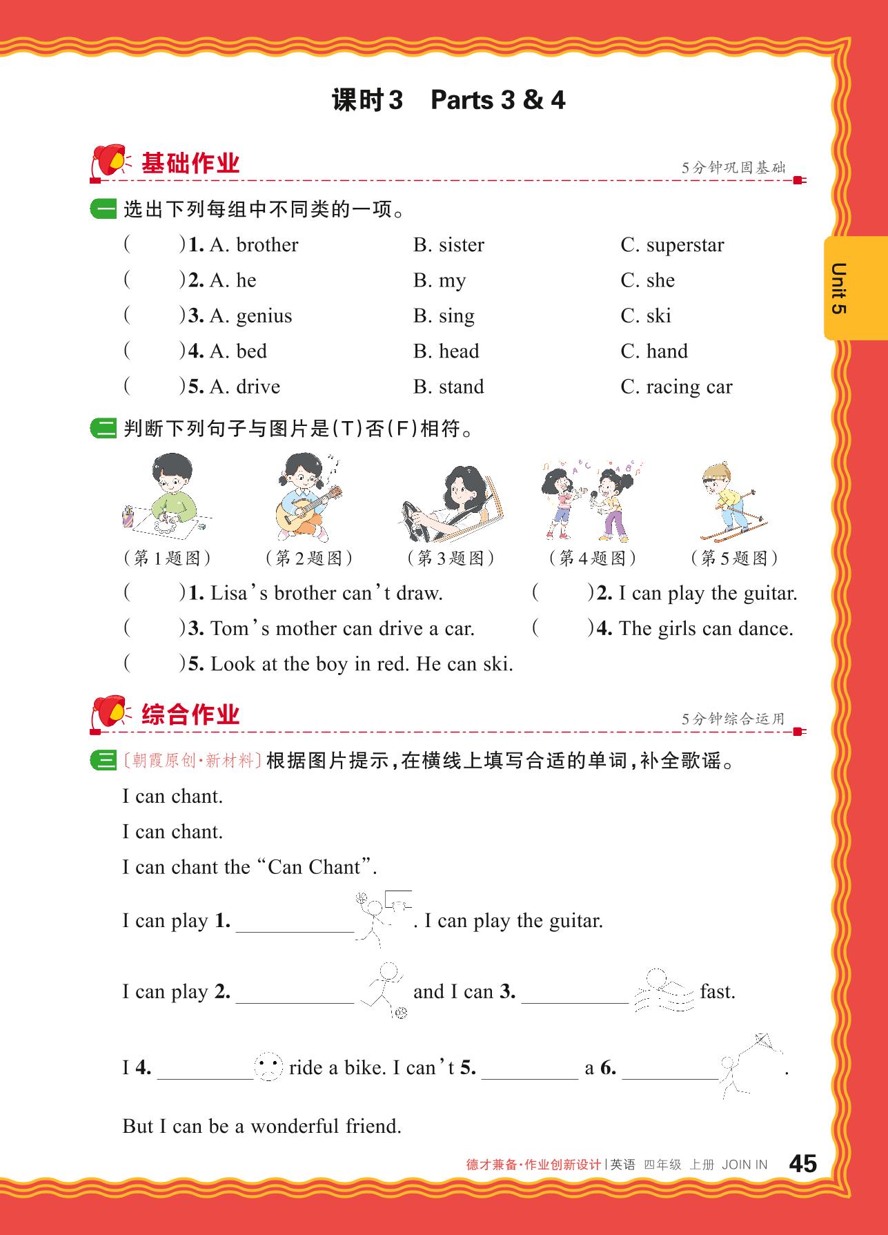 2024秋上册四年级英语剑桥版 Unit 5—课时3 Parts 3 & 4