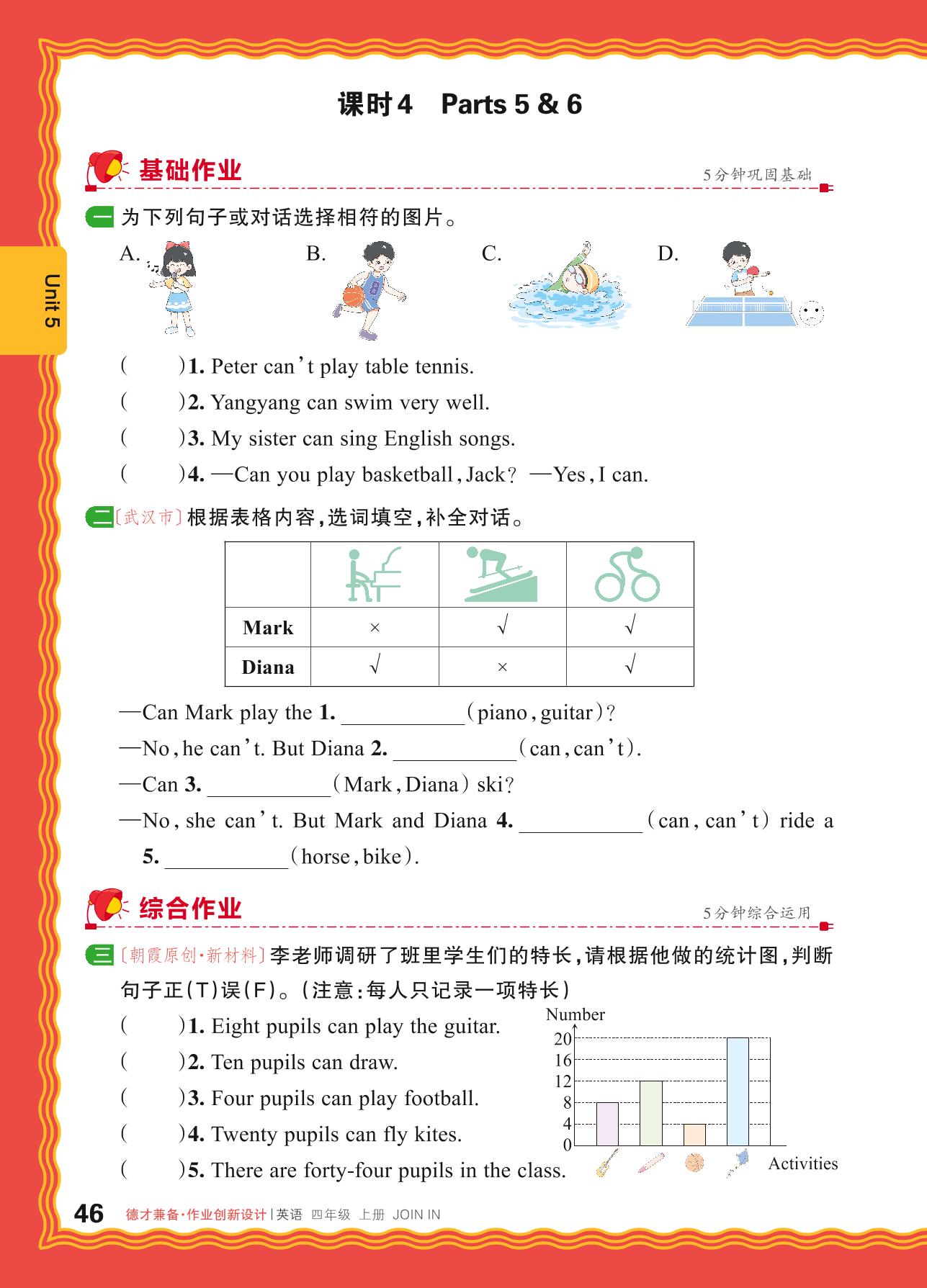 2024秋上册四年级英语剑桥版 Unit 5—课时4 Parts 5 & 6