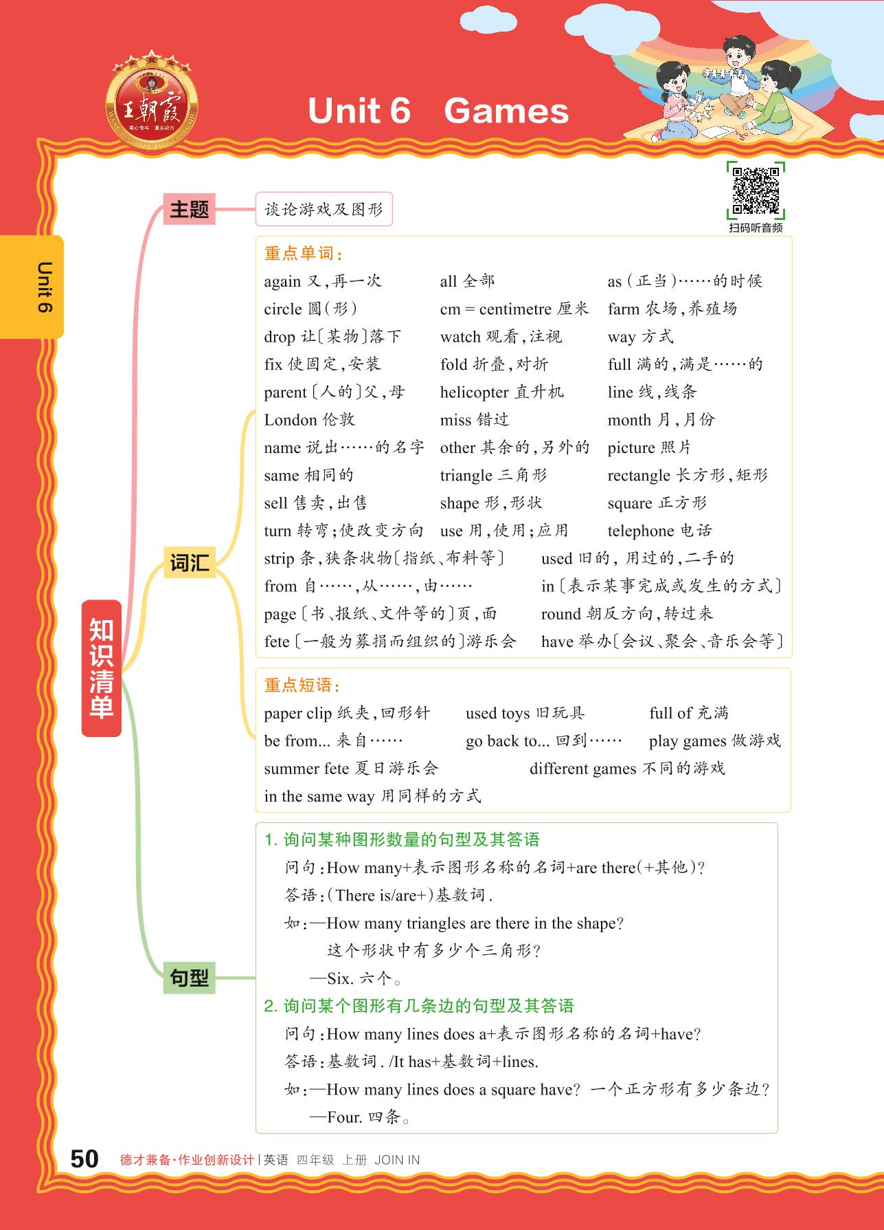 2024秋上册四年级英语剑桥版 Unit 6 知识清单