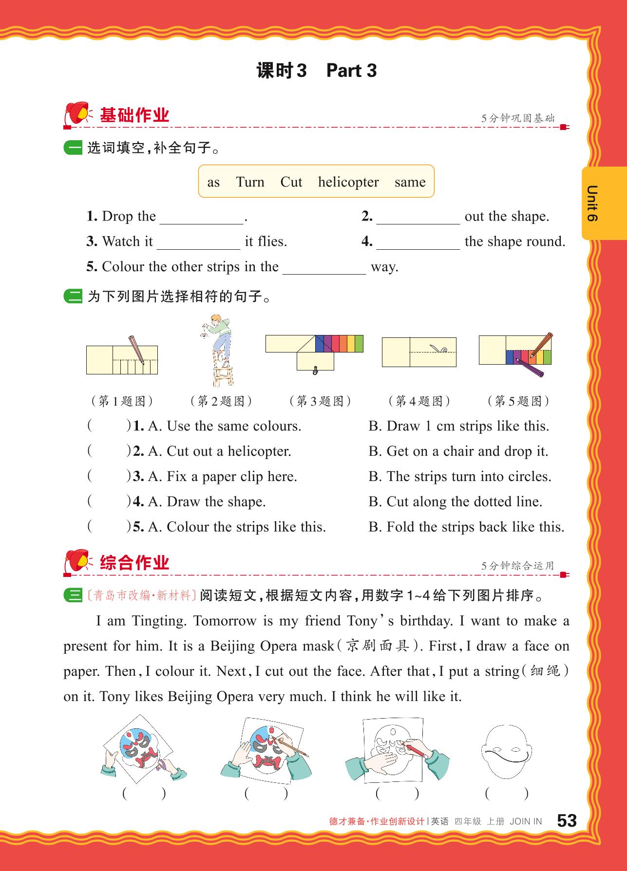 2024秋上册四年级英语剑桥版 Unit 6—课时3 Part 3