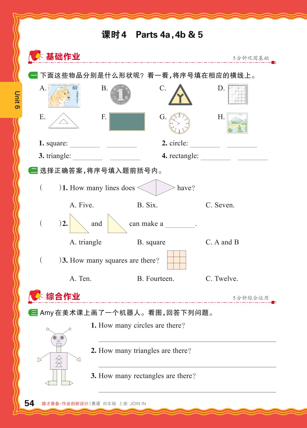 2024秋上册四年级英语剑桥版 Unit 6—课时4 Parts 4a,4b & 5