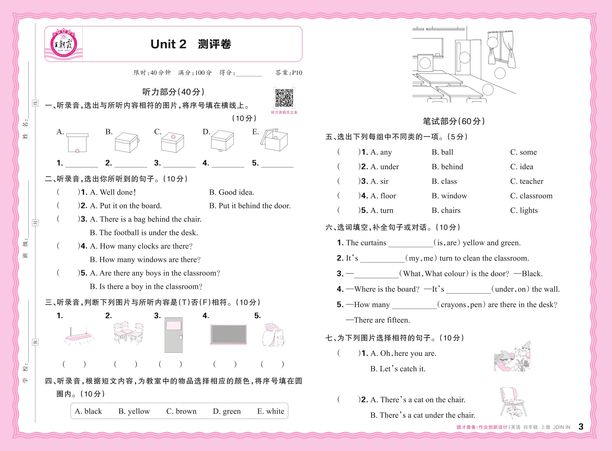 2024秋上册四年级英语剑桥版 Unit 2 测评卷