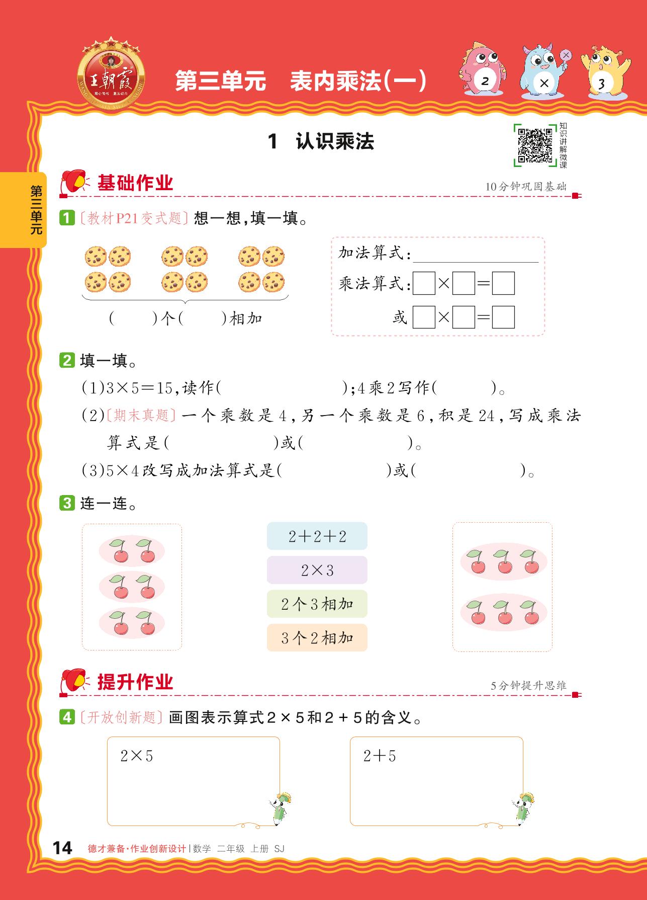 2024秋上册二年级数学苏教版 第三单元 表内乘法(一)——1. 认识乘法