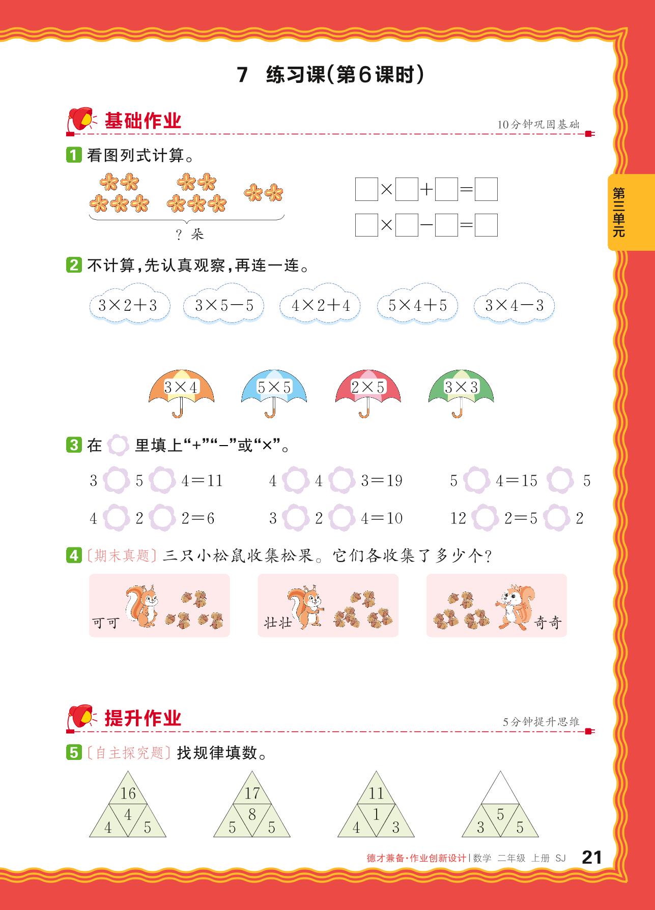 2024秋上册二年级数学苏教版 第三单元 表内乘法(一)——7. 乘加、乘减练习课