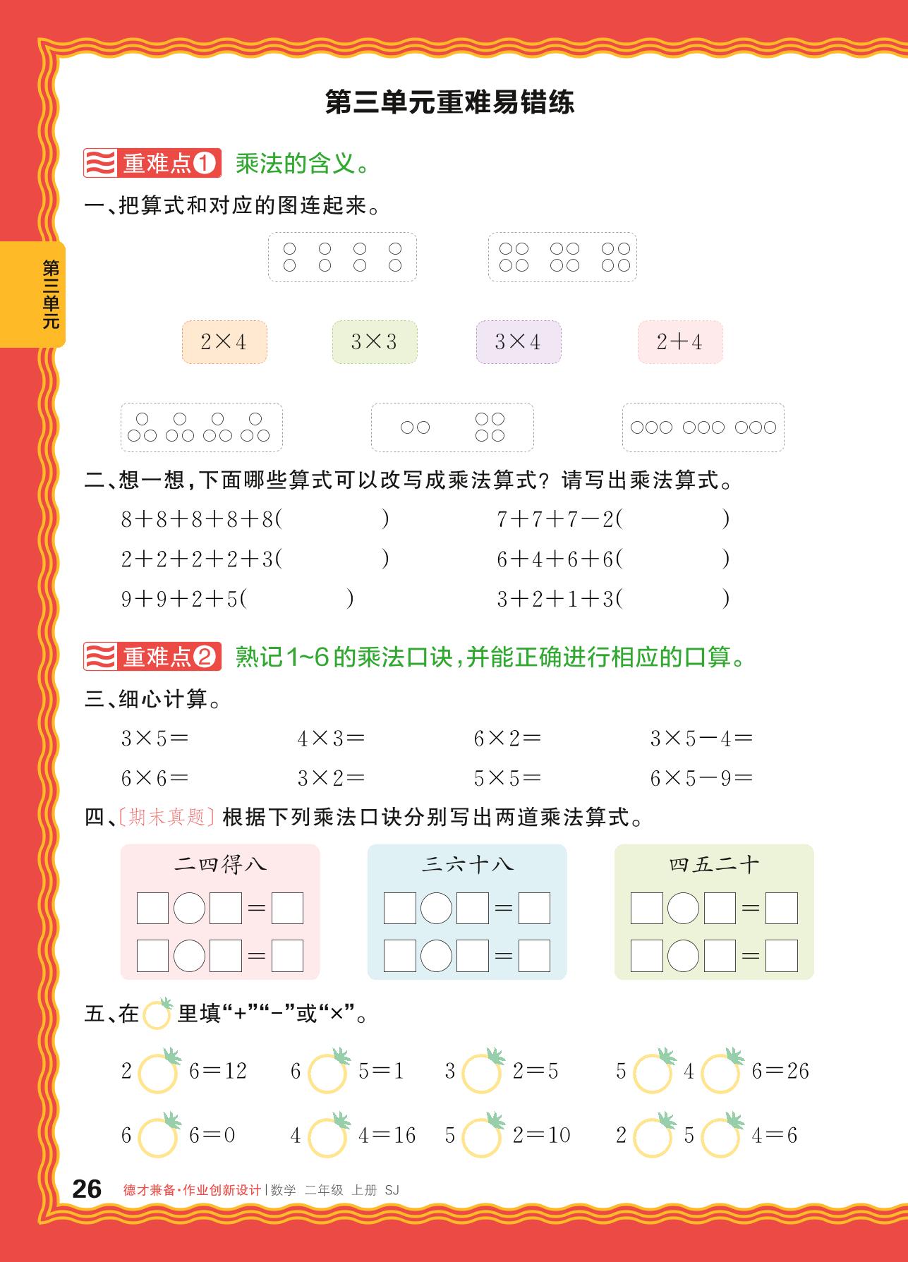 2024秋上册二年级数学苏教版 第三单元重难易错练