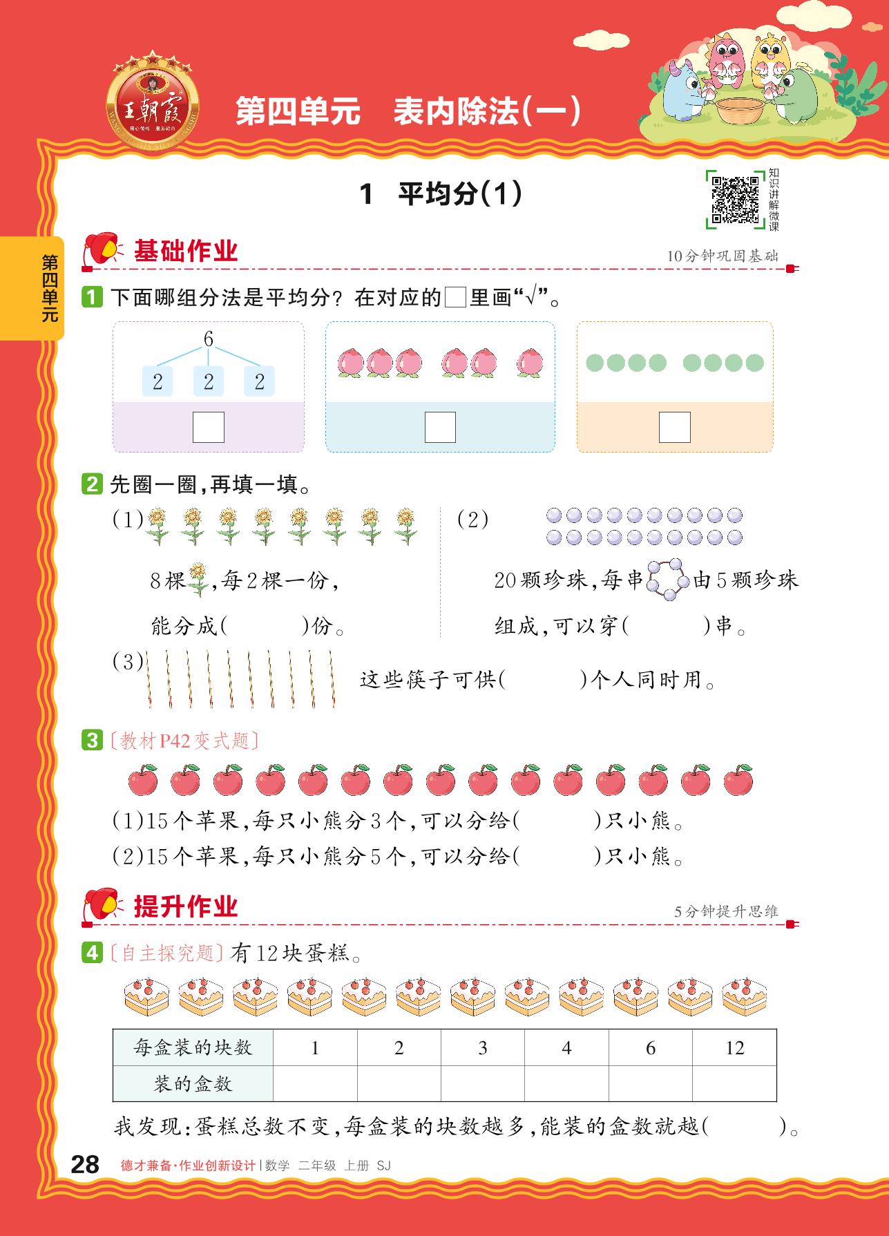 2024秋上册二年级数学苏教版 第四单元 表内除法(一)——1. 平均分(1)_R240820120107983