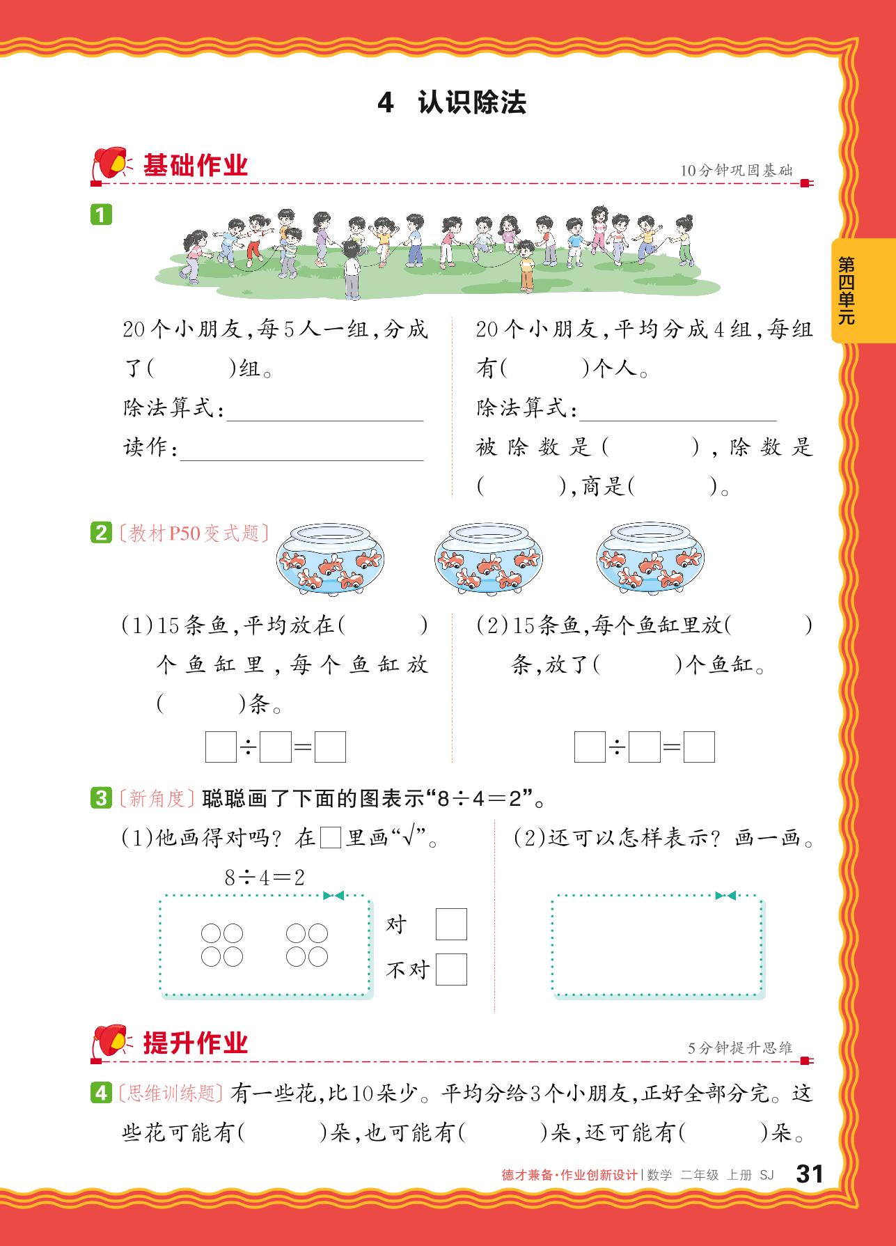 2024秋上册二年级数学苏教版 第四单元 表内除法(一)——4. 认识除法