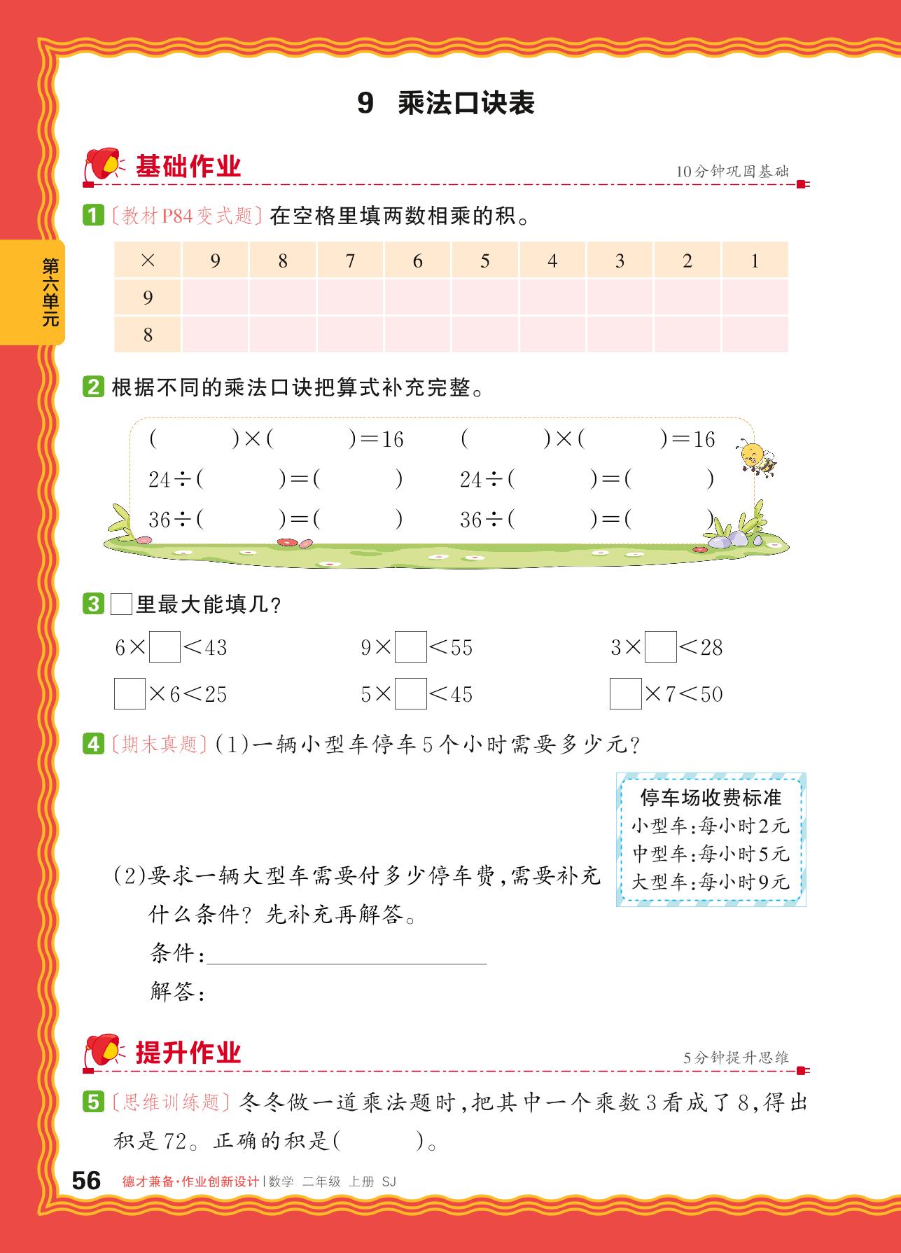 2024秋上册二年级数学苏教版 第六单元 表内乘法和表内除法(二)——9. 乘法口诀表
