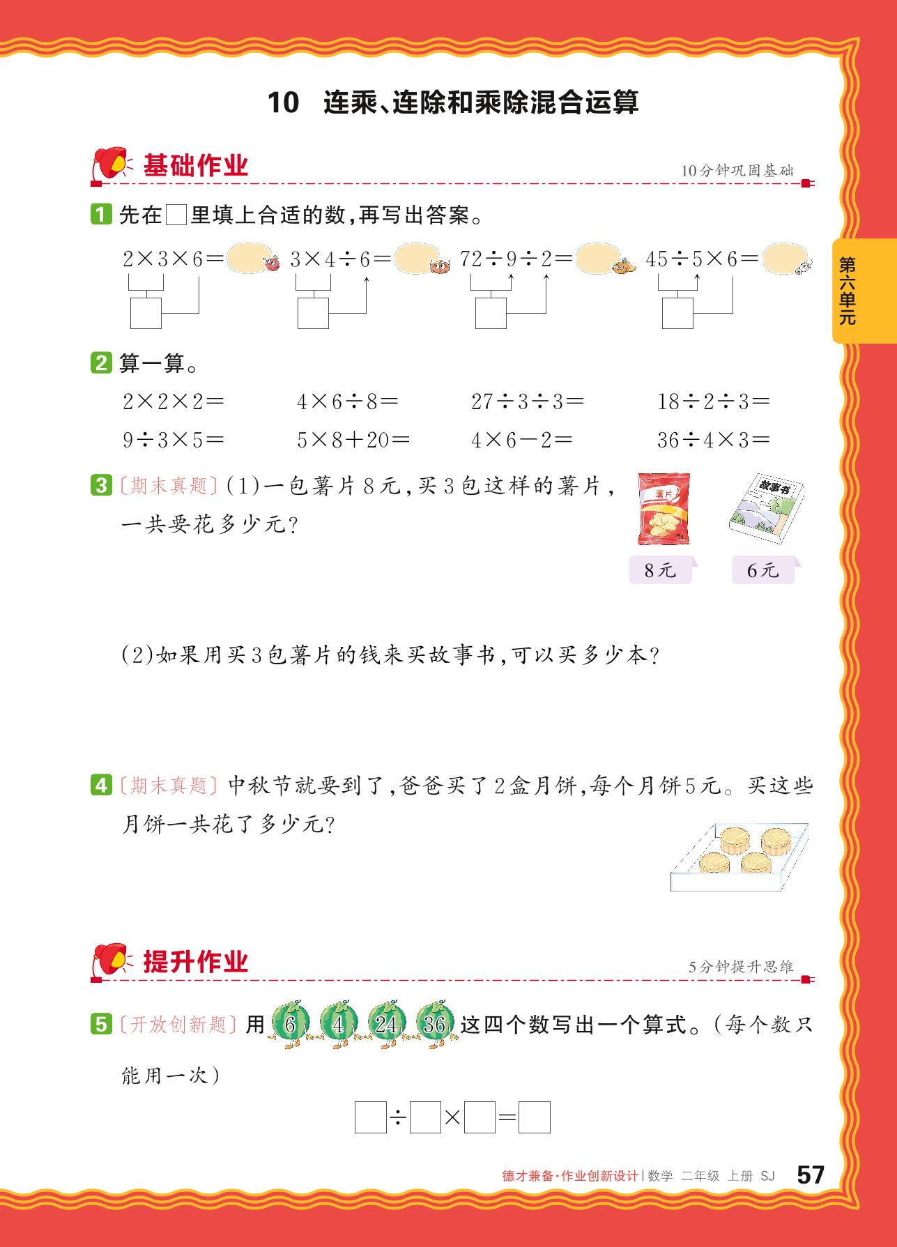 2024秋上册二年级数学苏教版 第六单元 表内乘法和表内除法(二)——10. 连乘、连除和乘除混合运算