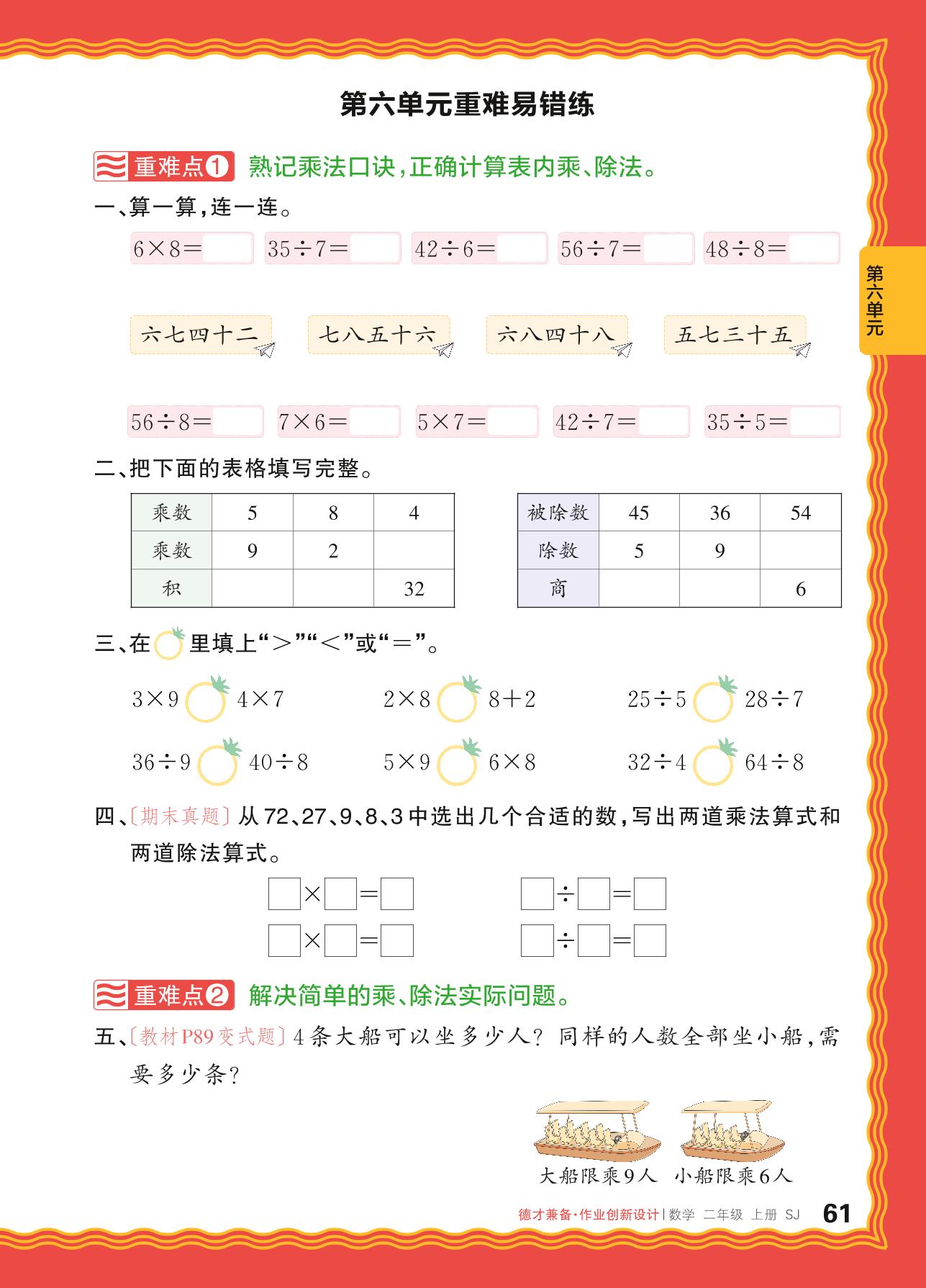 2024秋上册二年级数学苏教版 第六单元重难易错练