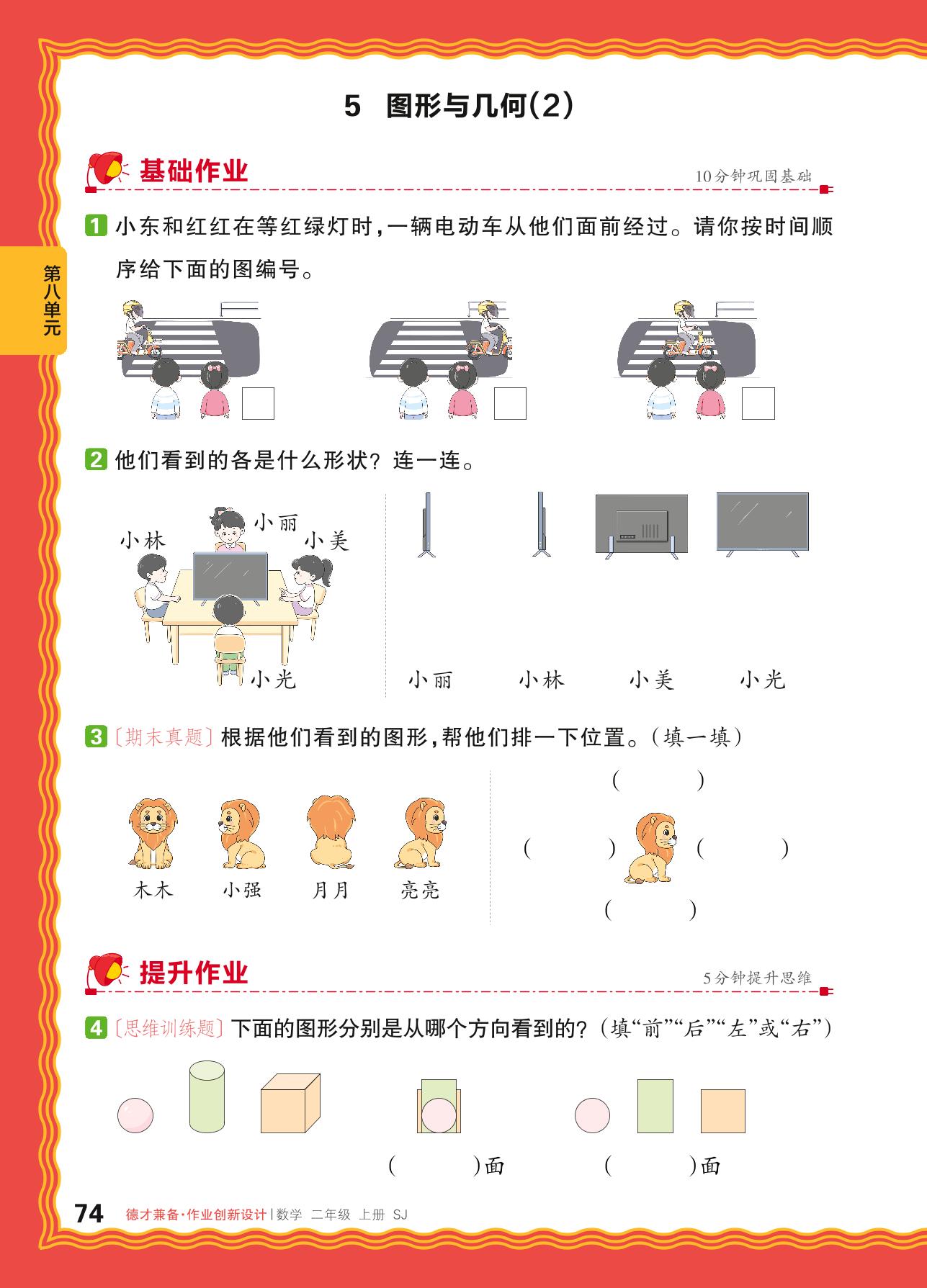 2024秋上册二年级数学苏教版 第八单元 期末复习——5. 图形与几何(2)
