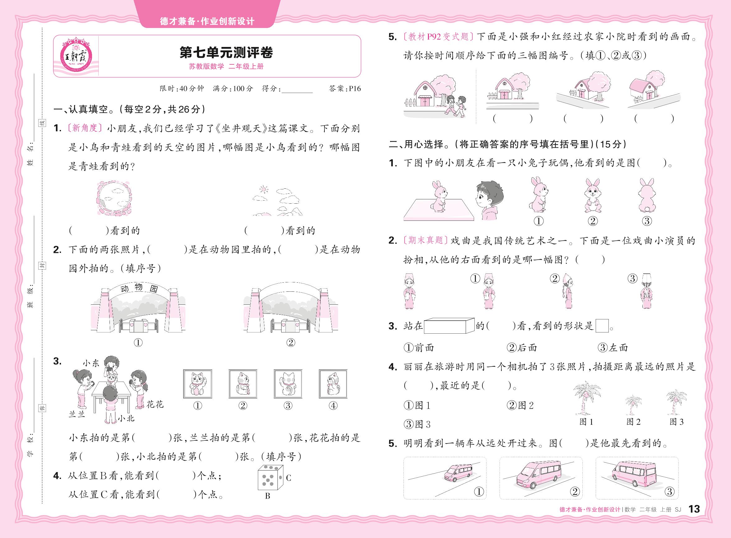 2024秋上册二年级数学苏教版 第七单元测评卷