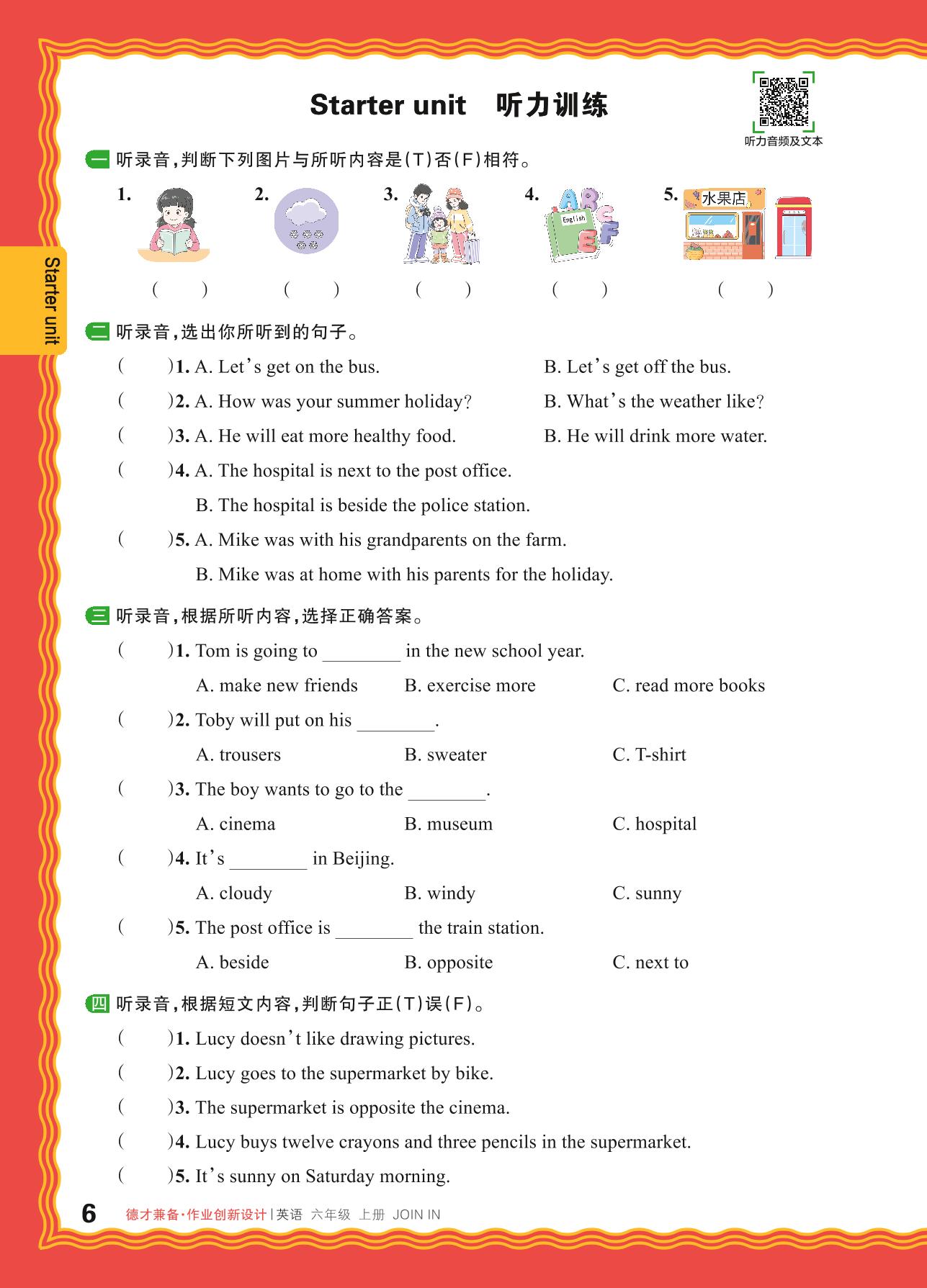 2024秋上册六年级英语剑桥版 Starter unit 听力训练