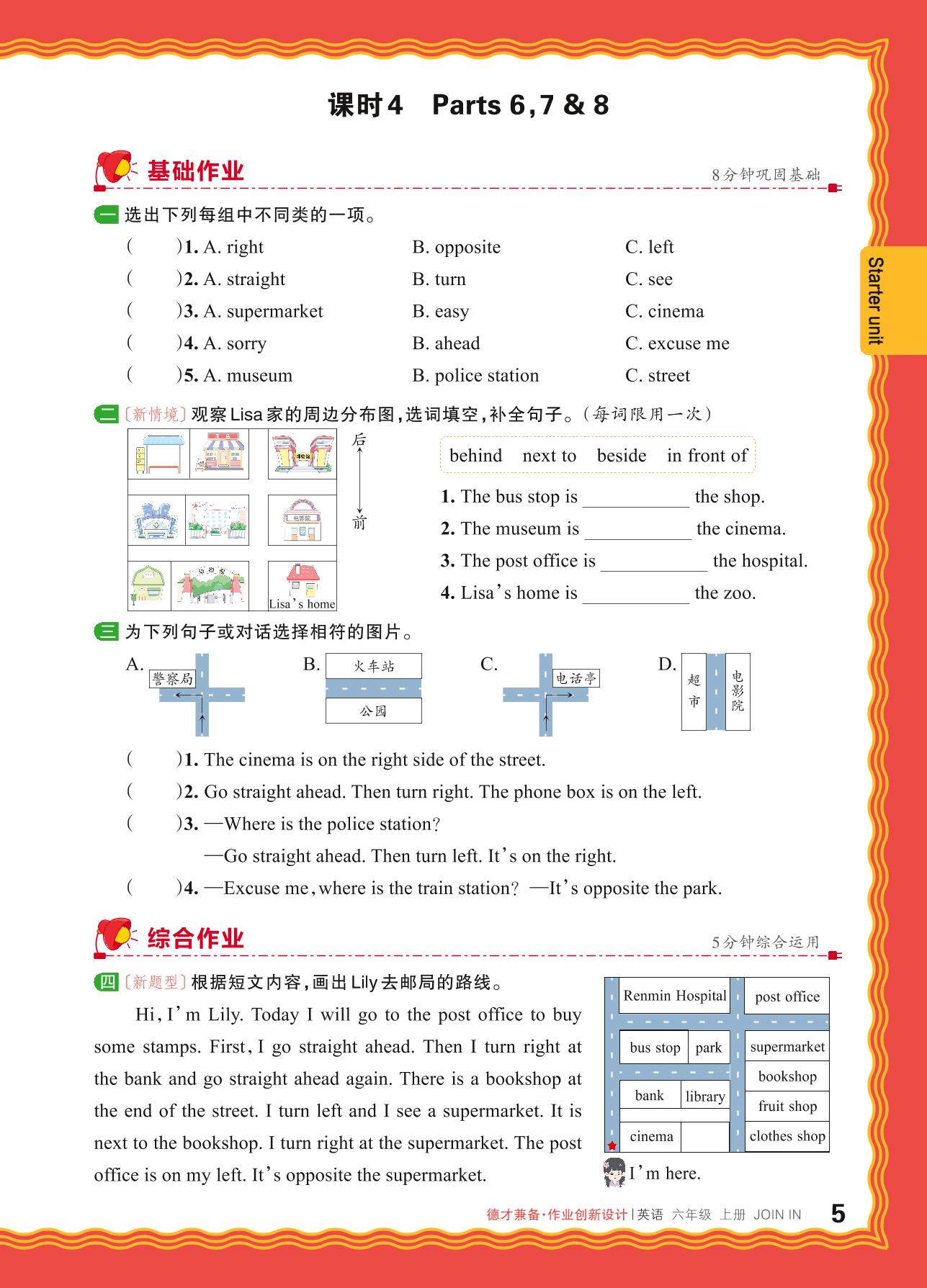 2024秋上册六年级英语剑桥版 Starter unit—课时 4 Parts 6,7 & 8