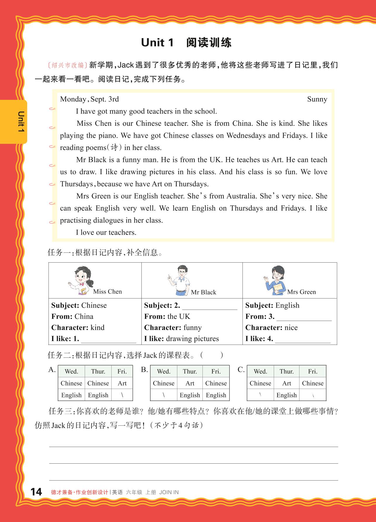 2024秋上册六年级英语剑桥版 Unit 1 阅读训练